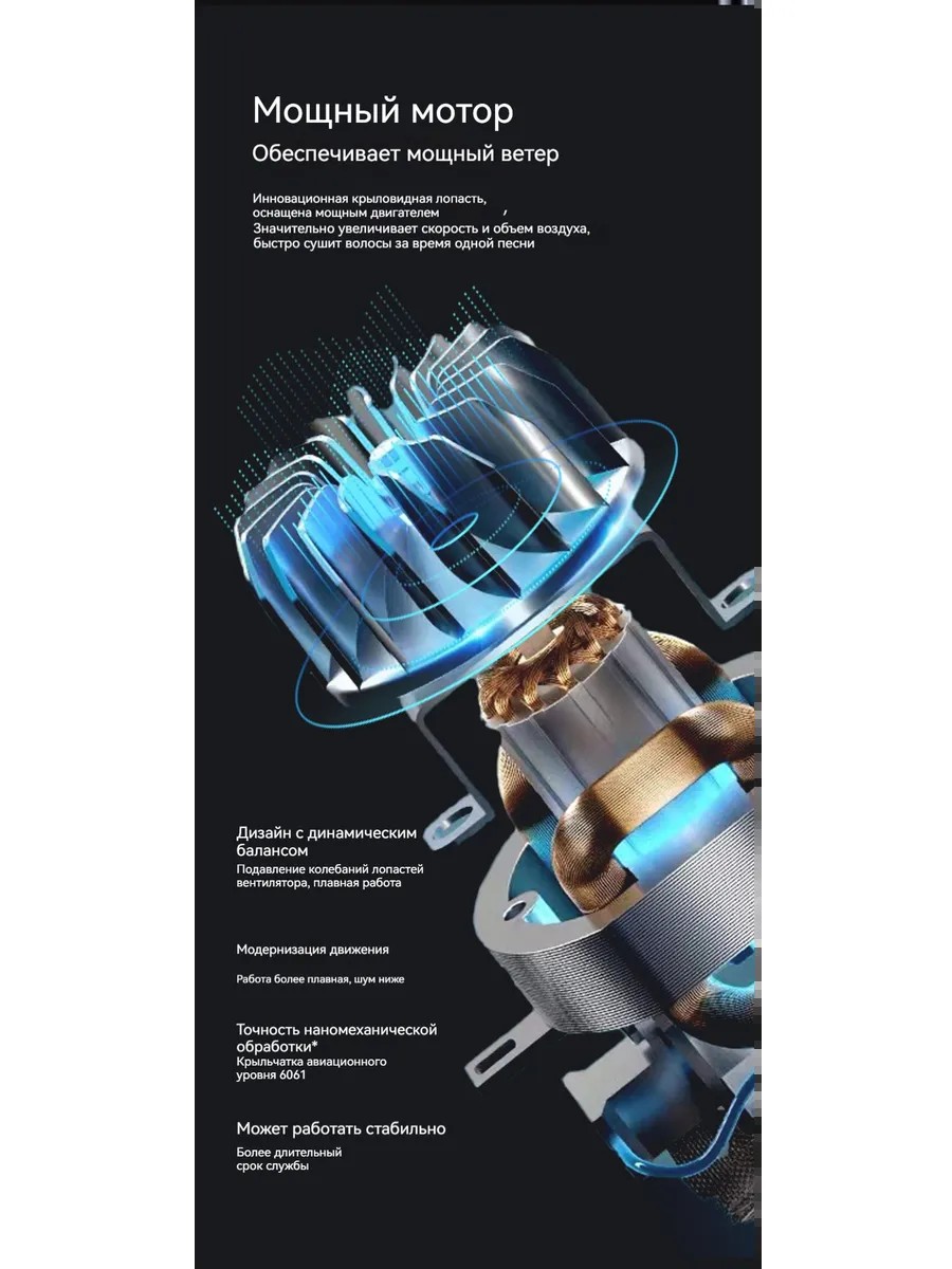 Высокоскоростной двигатель создает мощный поток воздуха, который сокращает время сушки на 68,5%