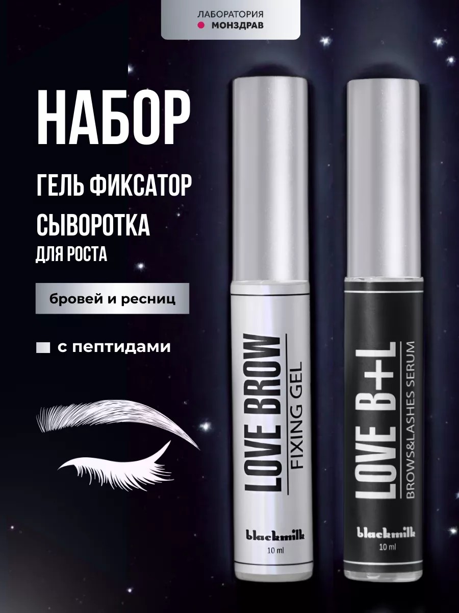 Набор для бровей и ресниц, включающий сыворотку для роста ресниц и бровей и гель-фиксатор для бровей, обеспечивает полный уход за бровями и ресницами, делая их выразительными и ухоженными.