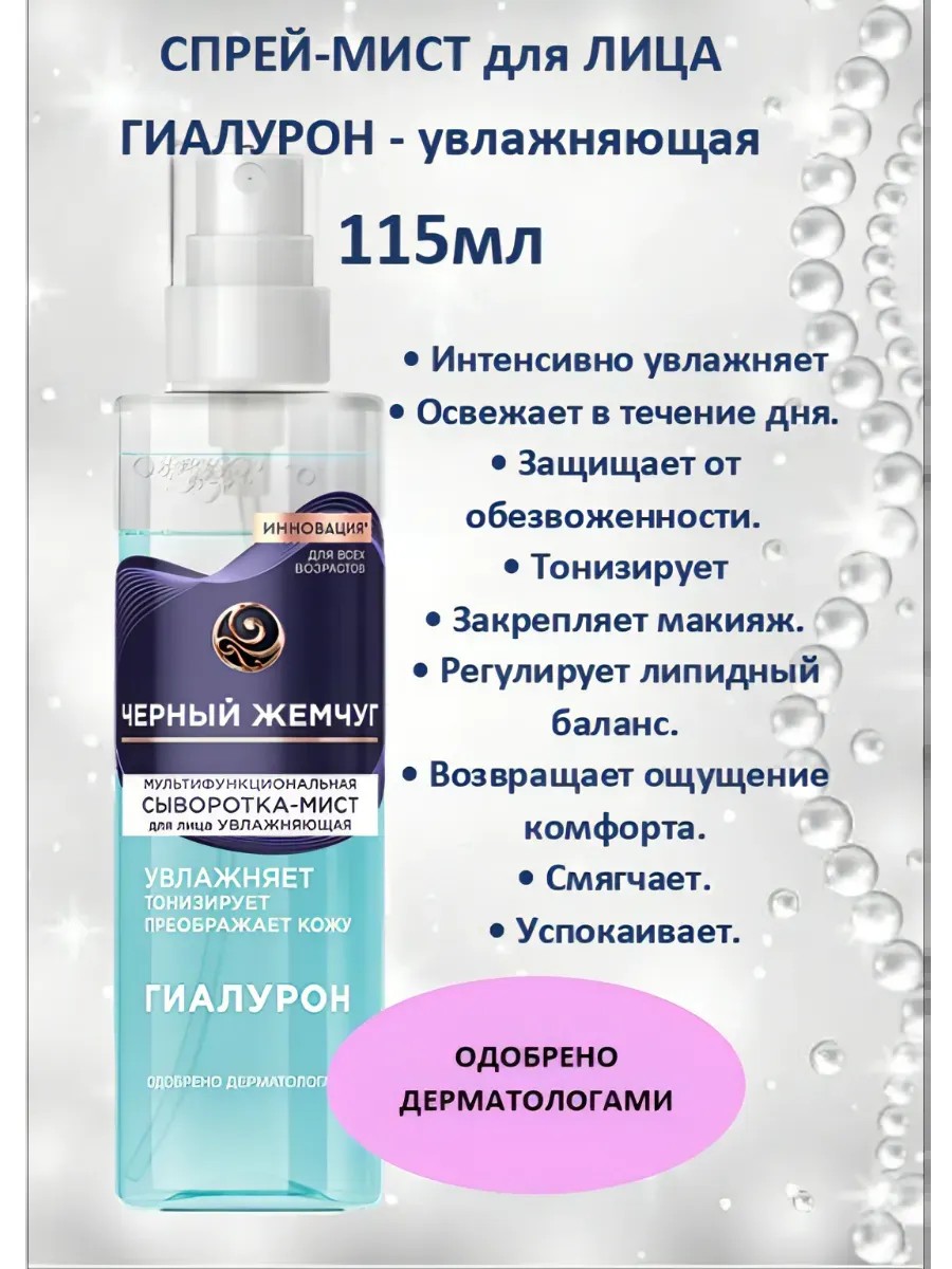 Черный Жемчуг Сыворотка-мист для лица Мультифункциональная увлажняющая с гиалуроном 115 мл.