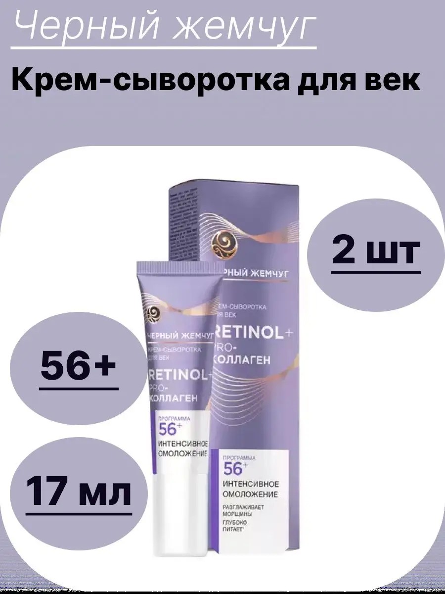 Крем-сыворотка для век от 56 лет – это средство, разработанное специально для ухода за нежной кожей вокруг глаз, повышения упругости и эластичности кожи. В отличие от обычных омолаживающих средств, которые насыщают кожу извне, формулы кремов Черный Жемчуг линейки Самоомоложение запускают в коже естественные процессы. Получив недостающее питание, клетки начинают правильно функционировать. Видимые эффекты: Антивозрастной уход; Разглаживает морщины; Повышает упругость и эластичность кожи; Осветляет темные круги и устраняет отечность. Одобрено офтальмологами и дерматологами, Uv-защита. Утром и вечером распределите легкими движениями: от внутреннего уголка глаза к внешнему по краю век, не нанося вблизи ресниц, чтобы избежать попадания на слизистую оболочку глаза. При повышенной чувствительности кожи провести тест на индивидуальную переносимость: нанести небольшое количество крем-сыворотки на нижнее веко, равномерно распределить. При отсутствии раздражения в течение 24 часов используйте согласно рекомендации по применению.