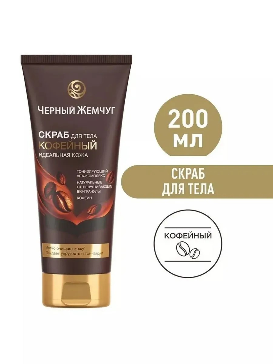 Кофейный скраб для тела Идеальная кожа бренда Черный Жемчуг - это средство, разработанное специально для мягкого очищения кожи, придания ей упругости и возвращения гладкости и эластичности. Скраб для тела на основе натуральных отшелушивающих bio-гранул бережно обновляет и выравнивает кожу, кофеин в составе стимулирует микроциркуляцию, повышает тонус и эластичность кожи. Скраб имеет яркий кофейный аромат, который точно поднимет вам настроение!