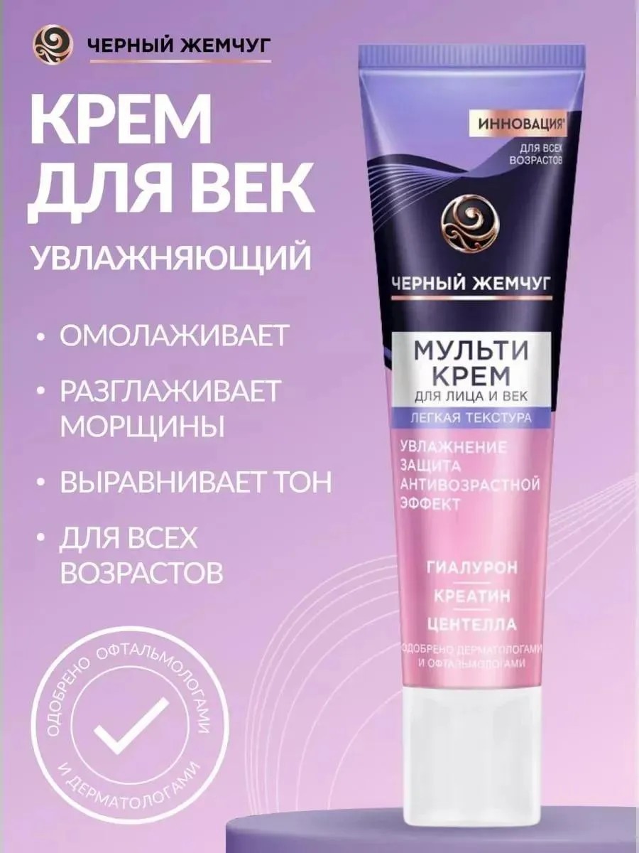 Мульти Крем для лица и век Черный Жемчуг — это комплексное средство для ухода за кожей лица, области вокруг глаз и шеи. Крем эффективно борется с темными кругами под глазами, синяками и мешками под глазами, обеспечивая свежий и отдохнувший вид.