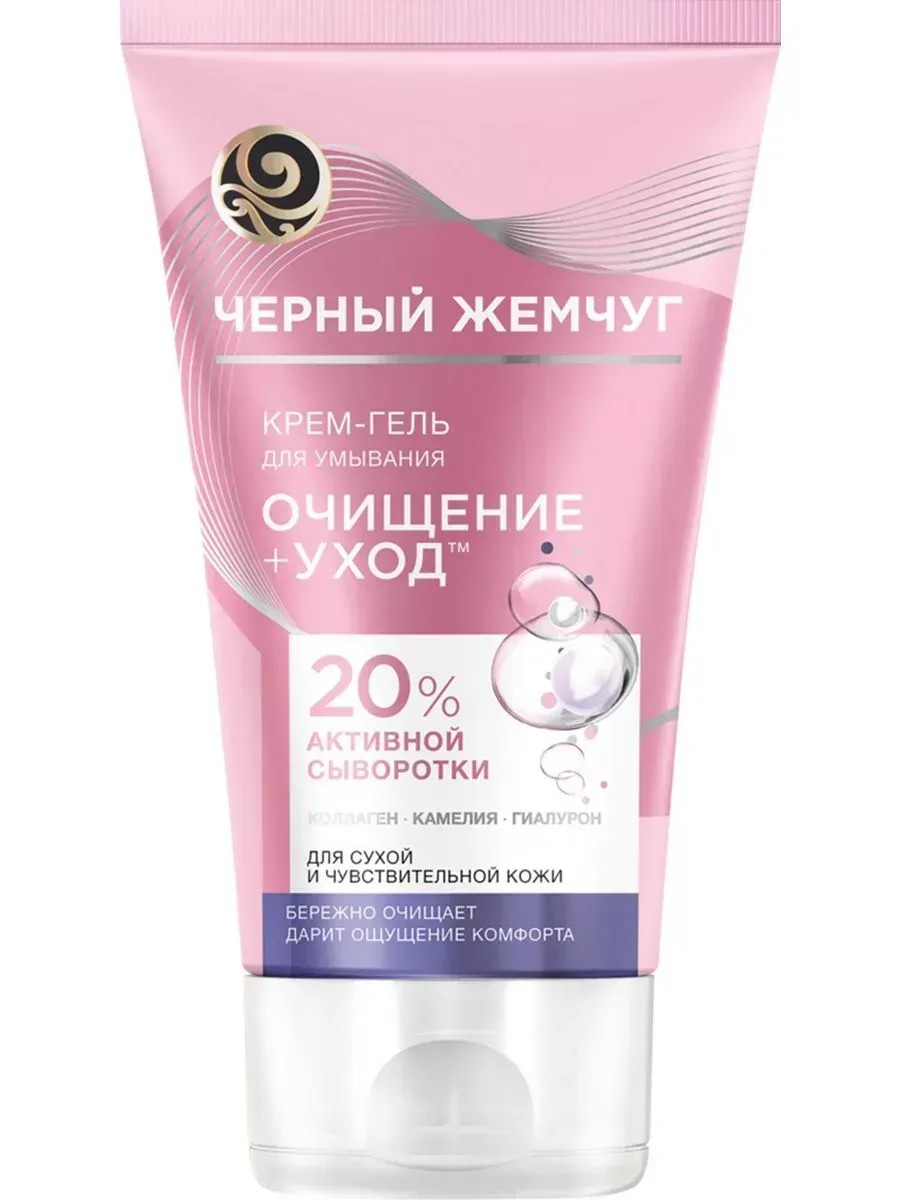 Крем-гель для умывания для сухой и чувствительной кожи бренда Черный Жемчуг – это средство, которое точно подарит твоей коже ощущение комфорта и свежести после умывания! Гель для умывания не просто очищает кожу, а мгновенно увлажняет, способствует питанию и повышает ее упругость уже на этапе очищения, благодаря формуле с 20% активной сыворотки в составе c жидким коллагеном, камелией и гиалуроном. Жидкий коллаген делает кожу более мягкой и гладкой, камелия обладает противовоспалительным и успокаивающим действием, гиалурон способствует поддержанию нормального водного баланса в клетках кожи. Формула продолжает действовать даже после смывания. Благодаря 20% активной сыворотки в составе уход за сухой кожей становится в 2 раза эффективнее. Крем-гель для умывания очищает кожу не пересушивая её, дарит ей ощущение комфорта и ухода. Результат - ваша кожа бережно очищена, дышит и меньше подвержена сухости. Крем-гель для умывания одобрен дерматологами. Для того чтобы процедура очищения сухой и чувствительной кожи была максимально эффективна, нужен комплексный подход. Используйте для умывания крем-гель для сухой и чувствительной кожи бренда Черный Жемчуг, который очищает кожу не пересушивая её, дарит ей ощущение комфорта и ухода, а также дополнительно увлажняет и питает кожу уже на этапе очищения. А после него используй ухаживающий тоник, который восстанавливает защитные функции кожи и мягко удаляет остатки загрязнений. Именно правильный и комплексный уход делает кожу более свежей и гладкой без раздражений и дискомфорта, а цвет лица здоровым и сияющим.