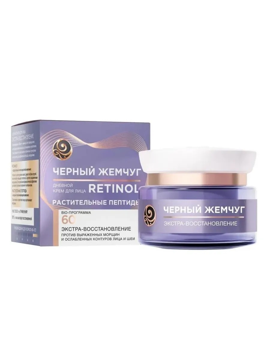 Крем для лица Чёрный жемчуг Retinol+, дневной, растительные пептиды, от 60 лет, 50 мл. Чтобы уверенно чувствовать себя в обществе, необходимо следить за своим внешним видом. Красивая и ухоженная кожа - одна из составляющих успешного образа современного человека. Устранить несовершенства и подчеркнуть достоинства вам поможет крем для лица Антивозрастной Bio-уход от ТМ Чёрный жемчуг. Предназначен для женщин от 60 лет. Он содержит натуральные компоненты ириса, белого чая, голубого и белого лотоса. Они интенсивно питают и увлажняют эпидермис, улучшают цвет лица, разглаживают морщины, делают кожу нежной и бархатистой. Масла ши, миндаля и авокадо делают нанесение крема комфортным даже для очень сухого и чувствительного типа кожи. А пептиды вербены сохраняют эффект до 48 часов. Крем для лица от морщин от 60 лет.