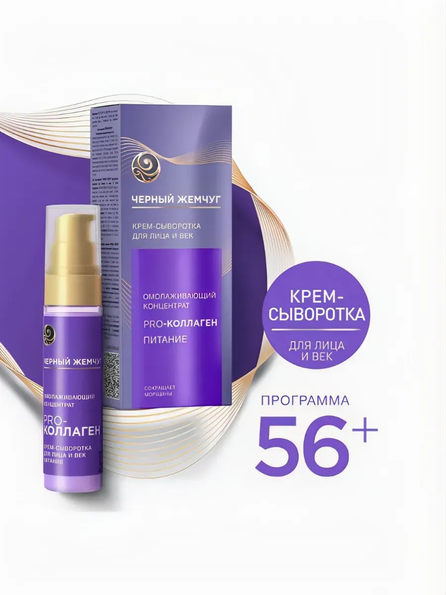 Черный Жемчуг Крем-сыворотка для лица и век Омолаживающий концентрат 56+