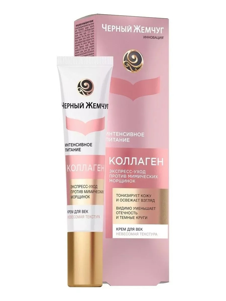 Крем для век Черный Жемчуг Питание, 17 мл. Тонкая и чувствительная кожа вокруг глаз нуждается в особом уходе. Именной такой уход разработали эксперты бренда Черный Жемчуг. Крем для век из серии Интенсивное Питание – проверенный экспресс-уход против мимических морщинок. Продукт содержит коллаген, так необходимый коже для поддержания тургора. Применение утром и вечером позволит восполнить ежедневную норму коллагена и интенсивно напитать кожу вокруг глаз. Крем для век тонизирует кожу и освежает взгляд. Видимо уменьшает отечность и темные круги. Результат заметен после первого применения.