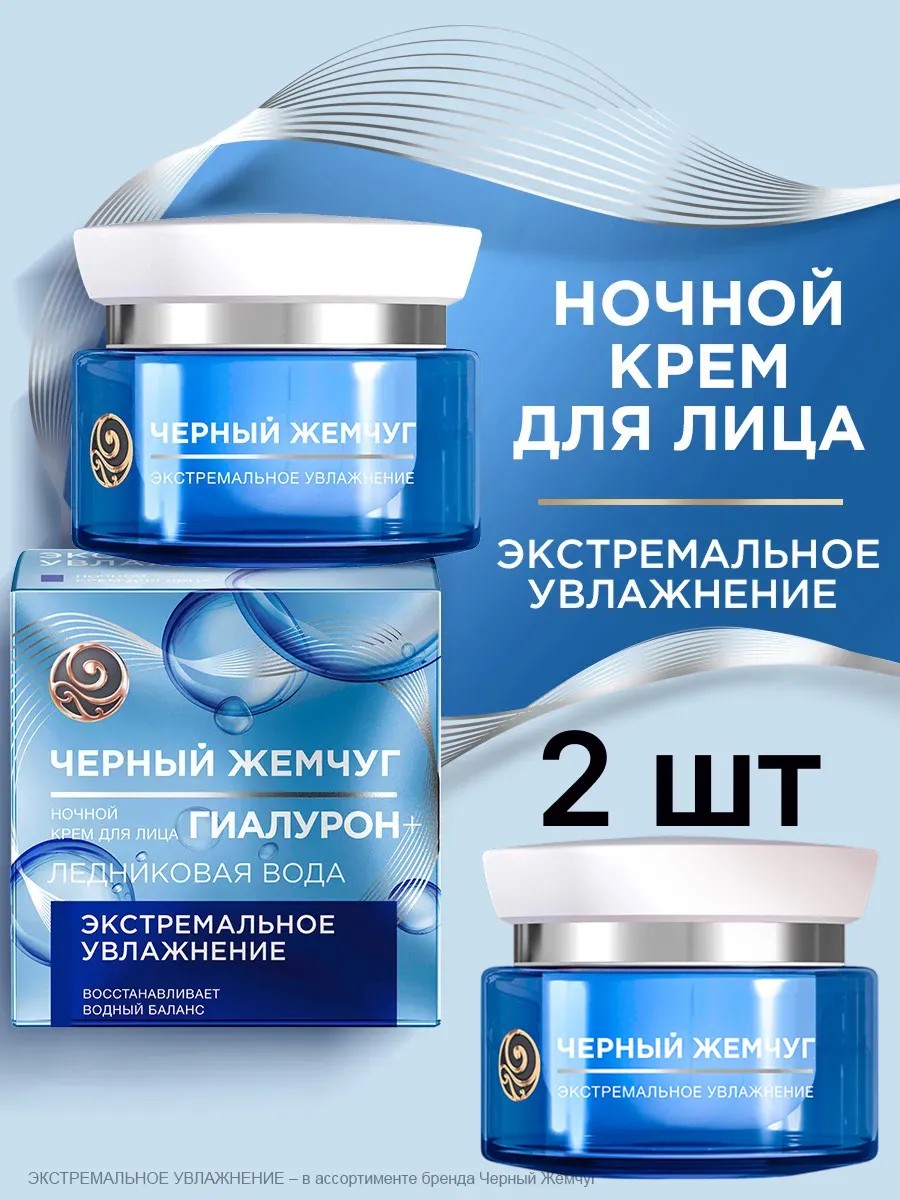 Ночной крем для лица Черный Жемчуг Экстремальное увлажнение активно работает во время сна, насыщая влагой и восстанавливая кожу. Ночной крем с чистым гиалуроном и ледниковой водой успокаивает и освежает кожу, возвращая ей сияние и гладкость.