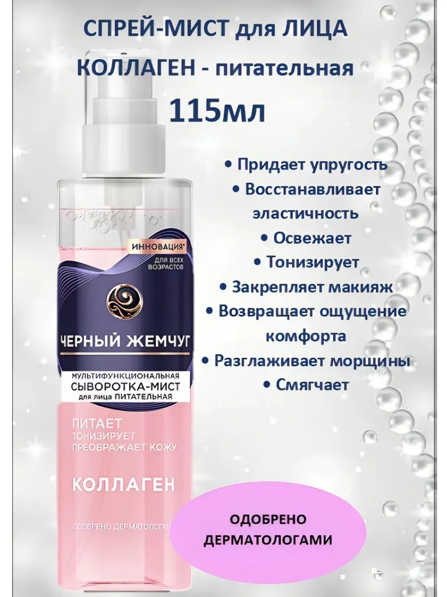 ЧЕРНЫЙ ЖЕМЧУГ. Сыворотка-мист для лица питательная с коллагеном 115 мл