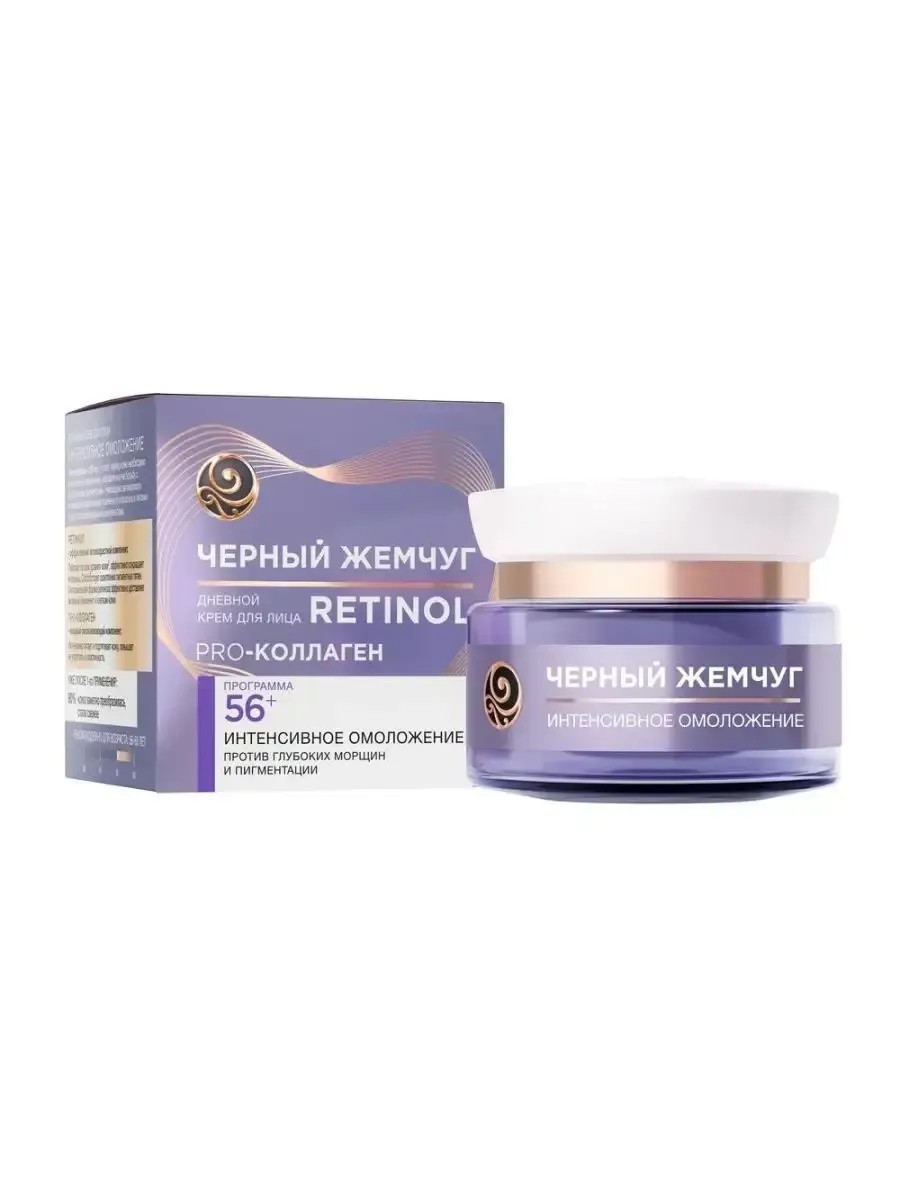 Черный Жемчуг Крем для лица дневной Программа от 56 лет, 50 мл. Программа ИНТЕНСИВНОЕ ОМОЛОЖЕНИЕ рекомендована к использованию от 56 лет: в этот период коже необходимо интенсивное омоложение, направленное на борьбу с морщинами, пигментацией кожи и припухлостью. Необходимо интенсивное восполнение утраченного коллагена и питание кожи активными компонентами. PRO- коллаген повышает плотность, упругость и эластичность кожи, протеины сои обеспечивают лифтинг-эффект, делают контуры лица более четкими и подтянутыми, способствуют разглаживанию морщин. В отличие от обычных омолаживающих средств, которые насыщают кожу извне, формулы кремов Черный Жемчуг линейки Самоомоложение запускают в коже естественные процессы. Получив недостающее питание, клетки начинают правильно функционировать. Кожа восстанавливается естественным путем: активно вырабатывает необходимое количество собственного коллагена, эластина и гиалуроновой кислоты. Дневной крем для лица программа от 56 лет - это средство, которое обеспечивает активное омоложение кожи: уменьшает морщины и пигментацию, комплексно обновляет кожу и воссоздает овал лица. Крем содержит инновационный мультикомпонентный Self-complex, который действует в пяти направлениях, запуская и поддерживая процесс самоомоложения: восстанавливает ресурс самообновления кожи, вносит недостающее питание, улучшает обмен веществ в коже, способствует увеличению доли молодых клеток в эпидермисе и защищает от основных факторов старения. Кожа после использования крема становится более увлажненная, плотная, мгновенно - более упругая и эластичная. Контуры лица подтягиваются, даже глубокие морщины становятся менее заметными. Этот дневной крем подходит также для области шеи и декольте. Для совершенной красоты и молодости вашей кожи 24 часа используйте все продукты линейки Самоомоложение: дневной крем для лица для сокращения морщин и повышения упругости и эластичности кожи