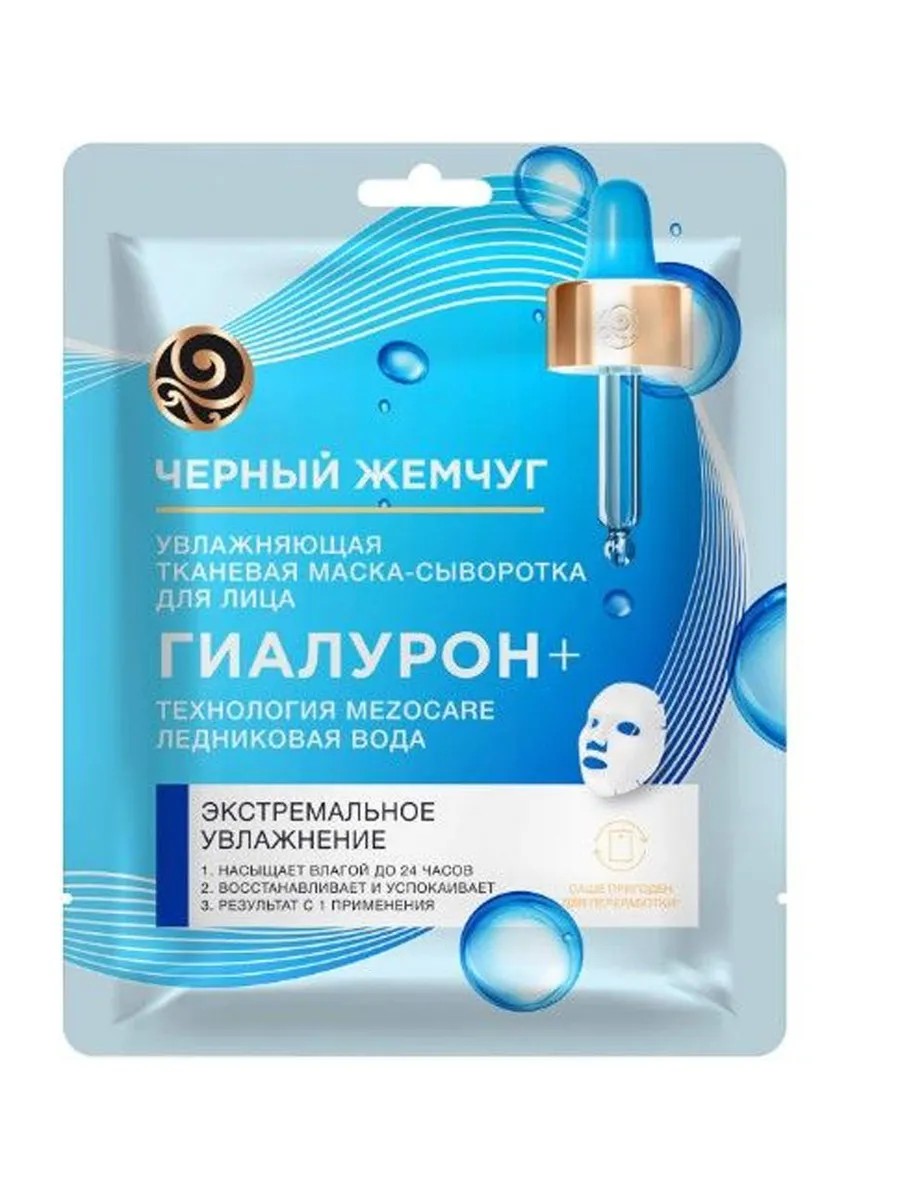 Откройте для себя увлажняющую маску-сыворотку с гиалуроном и технологией Mezocare – МЕЗОКЕА с ледниковой водой! Гиалурон восстанавливает водный баланс кожи и поддерживает необходимый уровень увлажнения в течение дня. Формула маски для лица содержит натуральные масла, аминокислоты и другие активные компоненты благодаря чему обеспечивает насыщенное увлажнение. После применения маски кожа становится более гладкой, нежной, мягкой, морщины становятся менее выраженными, а цвет лица – свежим и сияющим.Mezocare – МЕЗОКЕА – инновационная2 технология материала и мезококтейля, которая обеспечивает проникновение активных компонентов в глубокие слои кожи'. Нетканый материал маски во время использования обеспечивает плотное прилегание и создает эффект компресса, благодаря чему происходит качественное проникновение активных веществ. Ледниковая вода, насыщенная микроэлементами Ca2+, Mg2+, K+, восстанавливает, успокаивает и освежает кожу.Доказанная эффективность1 и видимый эффект после первого применения:• Интенсивное увлажнение на 24 часа.• Мгновенное снятие ощущения сухости и стянутости.• Устранение следов усталости и стресса.Результаты подтверждены в ходе потребительского тестирования1: 96% респондентов отметили, что тканевая маска интенсивно увлажняет кожу; 84% – после первого применения преображает кожу; 92% – снимает следы усталости и стресса.Используйте маску для лица Увлажнение Черный Жемчуг 1-2 раза в неделю для достижения лучшего эффекта. Попробуйте также другие продукты бренда. Еще больше информации на официальном сайте myblackpearl.[1] Свойства подтверждены тестированием при участии 100 женщин, визуальная оценка, min 84% согласившихся, РФ, 2021.[2] в портфолио ООО Юнилевер Русь.['] в пределах эпидермиса.Экстремальное увлажнение – в ассортименте бренда Черный Жемчуг.