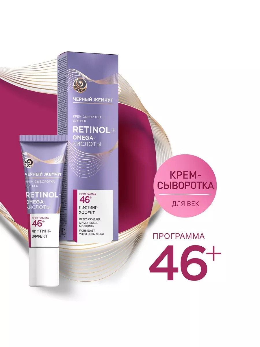 Эксперты бренда Черный Жемчуг разработали крем-сыворотку для век лифтинг-эффект с ретинолом и омега-кислотами с учетом возрастных особенностей и потребностей кожи век от 46 лет.