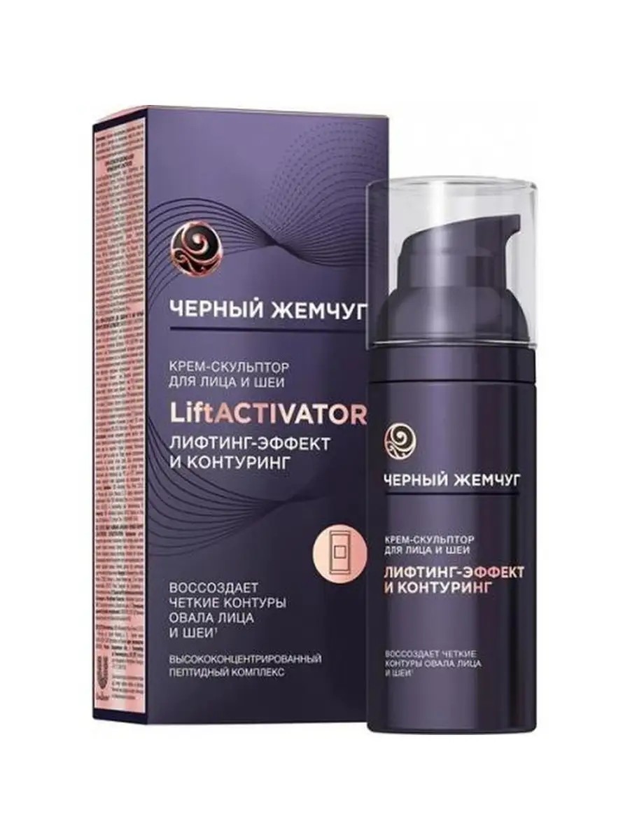 Черный жемчуг Крем-скульптор для лица и шеи LiftActivator, 50 мл. Крем-скульптор LiftACTIVATOR Черный Жемчуг обеспечивает лифтинг-эффект, укрепляет кожу лица и шеи, повышает плотность, упругость и эластичность кожи, выравнивает её рельеф. Правила ухода: Легкими массирующими движениями наносите крем утром и вечером на очищенную кожу по схеме по направлению вверх. Обязательно наносите крем на кожу шеи. Перед первым применением нажмите на дозатор несколько раз.