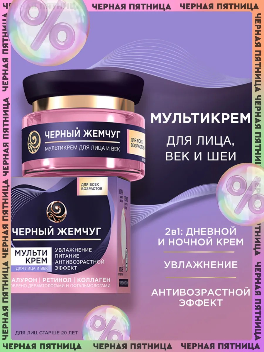 ЧЕРНЫЙ ЖЕМЧУГ Мультикрем для лица увлажняющий для век для глаз с ретинолом