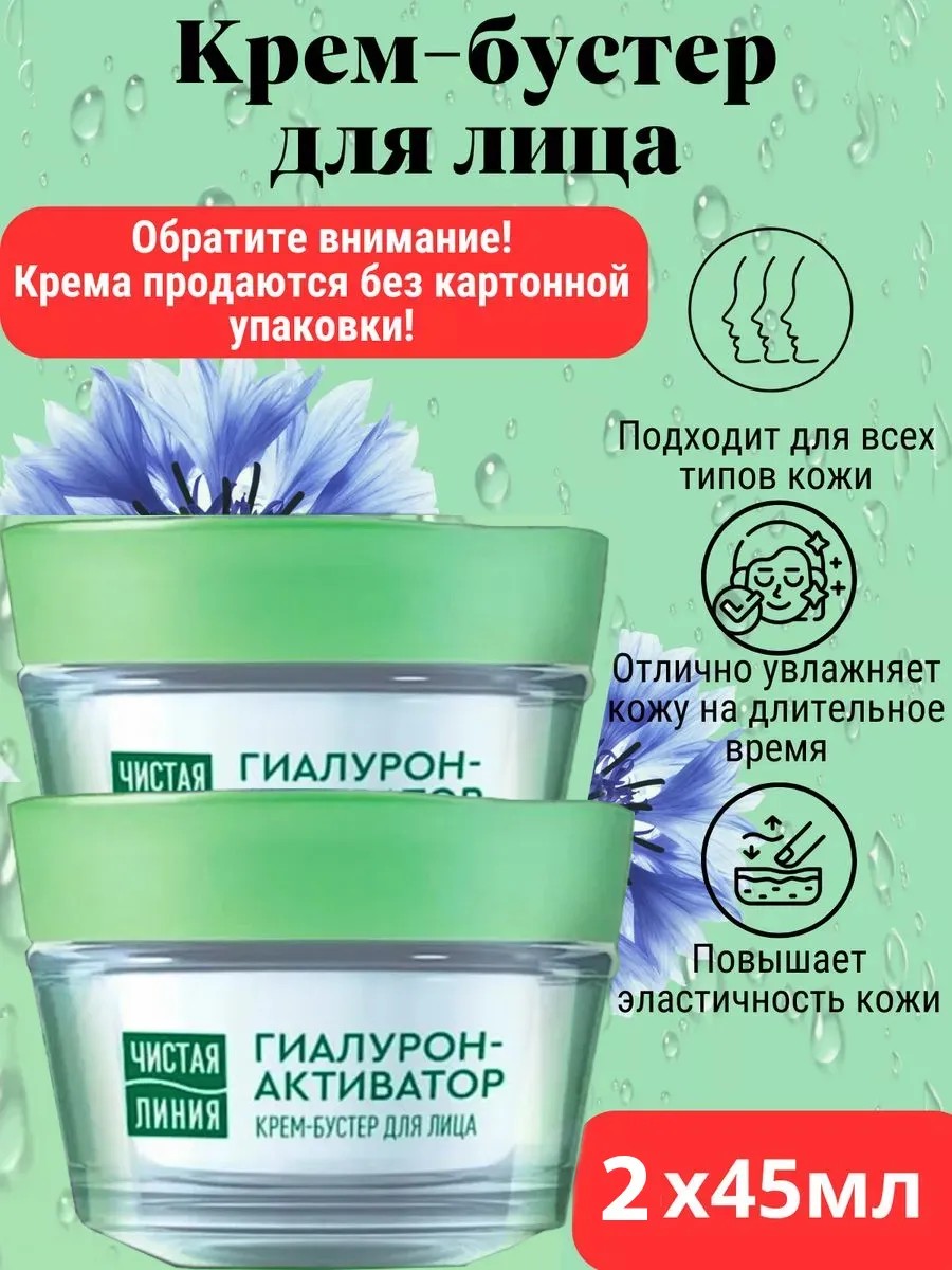 48 часов увлажнения1 с новым кремом-бустером от экспертов бренда Чистая Линия, который содержит 97% компонентов натурального происхождения.* В центре формулы-эссенция из пяти экстрактов и масел Nature Plus (экстракт вербены, экстракт пиона, масла миндаля, льна, оливы), а также экстракт василька и 2% активного гиалурон-геля. Растительный гиалурон-активатор стимулирует синтез собственной гиалуроновой кислоты и поддерживает естественный процесс увлажнения кожи. Кожа вновь увлажненная и мягкая. Активные натуральные компоненты питают, восстанавливают липидный барьер, наполняют кожу влагой, способствуют ее удержанию в коже и выравнивают ее микрорельеф. [1] подтверждено клинически: после 10 дней использования крема эффект увлажненности сохраняется 48ч, РФ, 2022. *компоненты натурального происхождения отмечены в составе на упаковке.