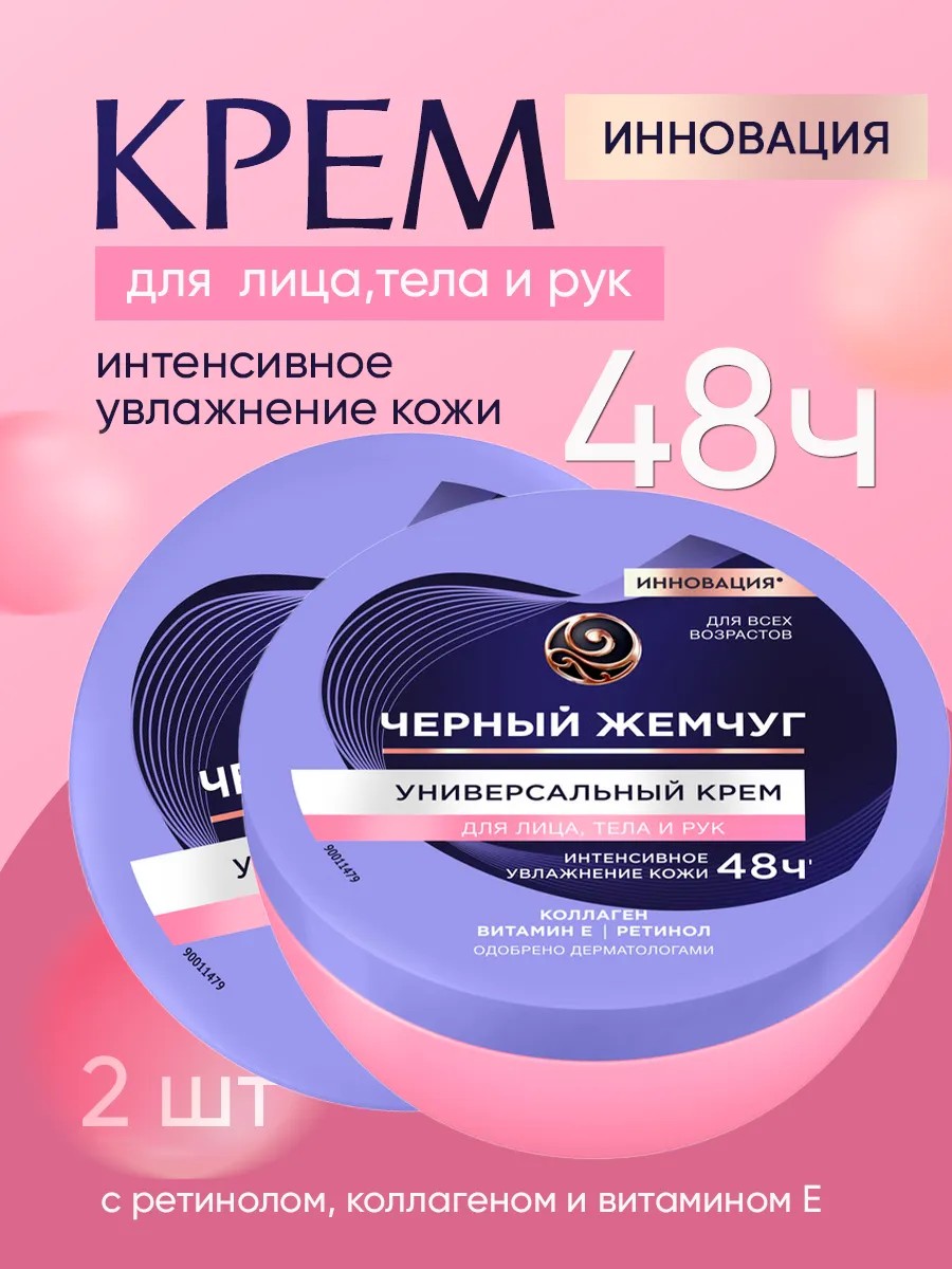 Увлажняющий крем для рук, лица и тела с ретинолом, коллагеном и витамином Е 3в1 Черный жемчуг 2шт х 150мл: