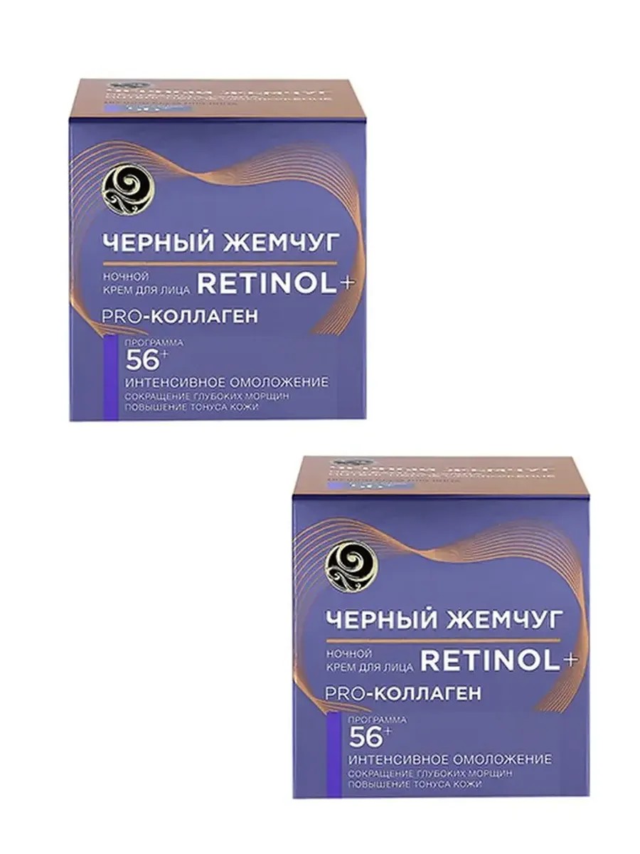 Крем ночной для лица Черный жемчуг Программа 56+, 50 мл. Крем для сокращения глубоких морщин и повышения тонуса кожи. Ночной крем «Черный жемчуг Программа 56+» проникает в глубинные слои кожи, запуская естественные процессы восстановления клеток. Работает сразу в нескольких направлениях. Pro-коллаген обеспечивает интенсивное питание и увлажнение кожи, повышает ее плотность, упругость и эластичность. Соевые протеины уменьшают глубину морщин и придают четкие контуры овалу лица. Крем активизирует обменные процессы, повышает количество молодых клеток дермы и снижает проявление признаков старения. В результате проходит сухость и шелушения, уменьшается пигментация, кожа становится более гладкой и подтянутой, приобретает ровный и здоровый тон. СПОСОБ ПРИМЕНЕНИЯ: Нанесите крем на чистую, сухую кожу лица, равномерно распределите, помассируйте. В комплекте 2 штуки.