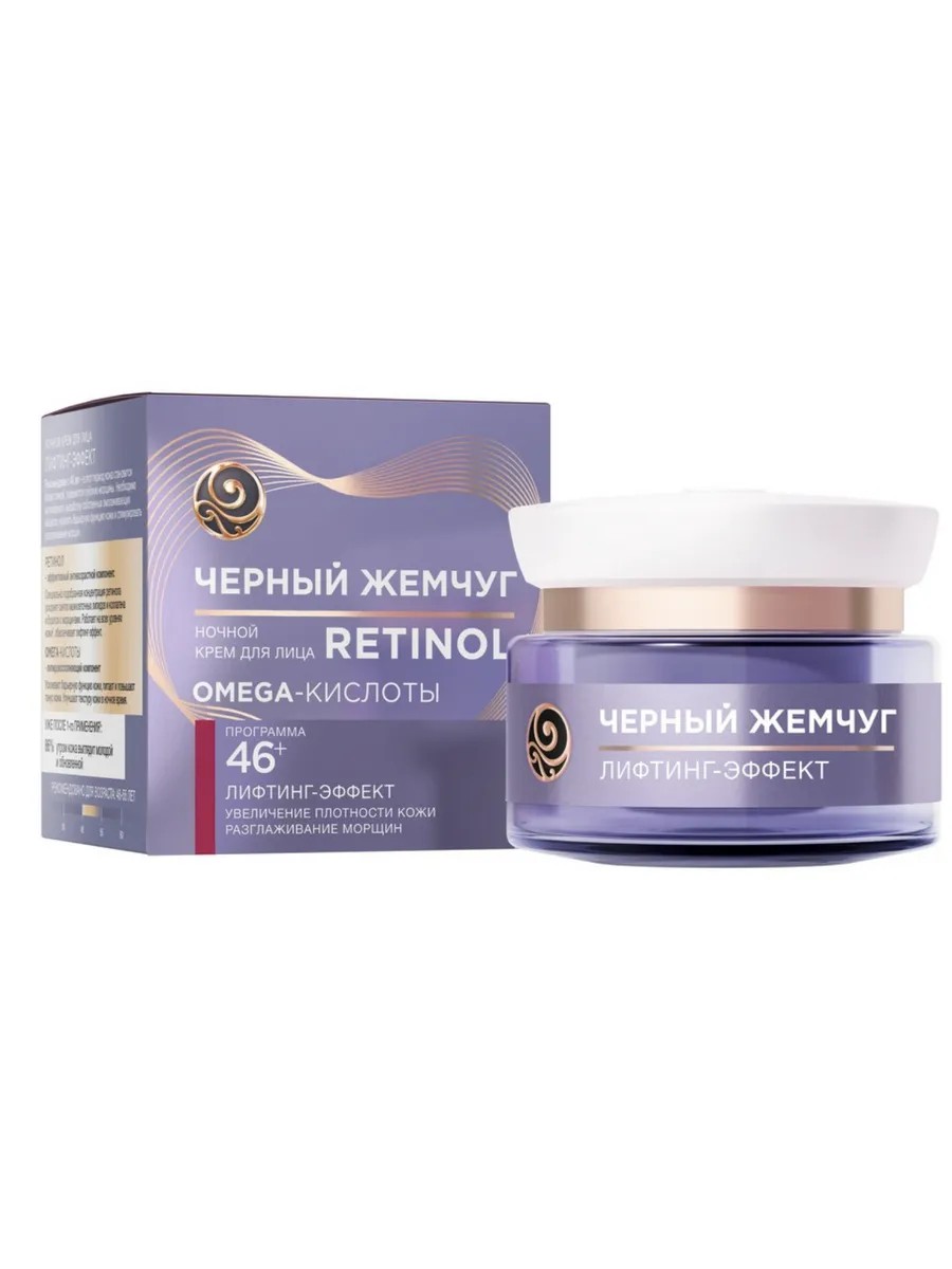 Черный Жемчуг Ночной крем для лица Retinol + с OMEGA-кислотами, 46+