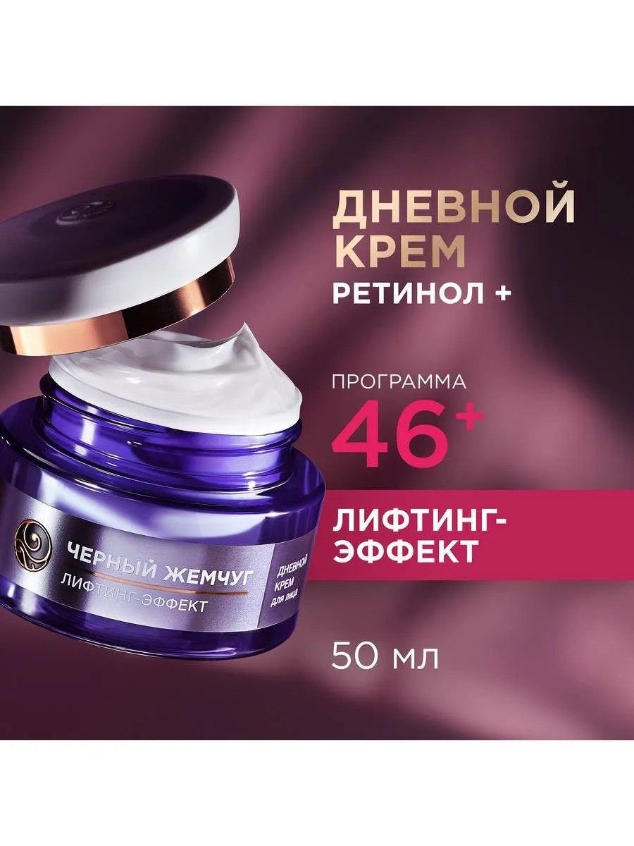 Дневной лифтинг-крем для кожи лица и шеи Черный Жемчуг Программа 46+ создан с учетом возрастных особенностей и потребностей кожи от 46 лет. Он эффективно борется с мимическими морщинами и омолаживает кожу. Антивозрастной дневной крем устраняет следы усталости, выравнивает тон лица и оказывает лифтинг-эффект.