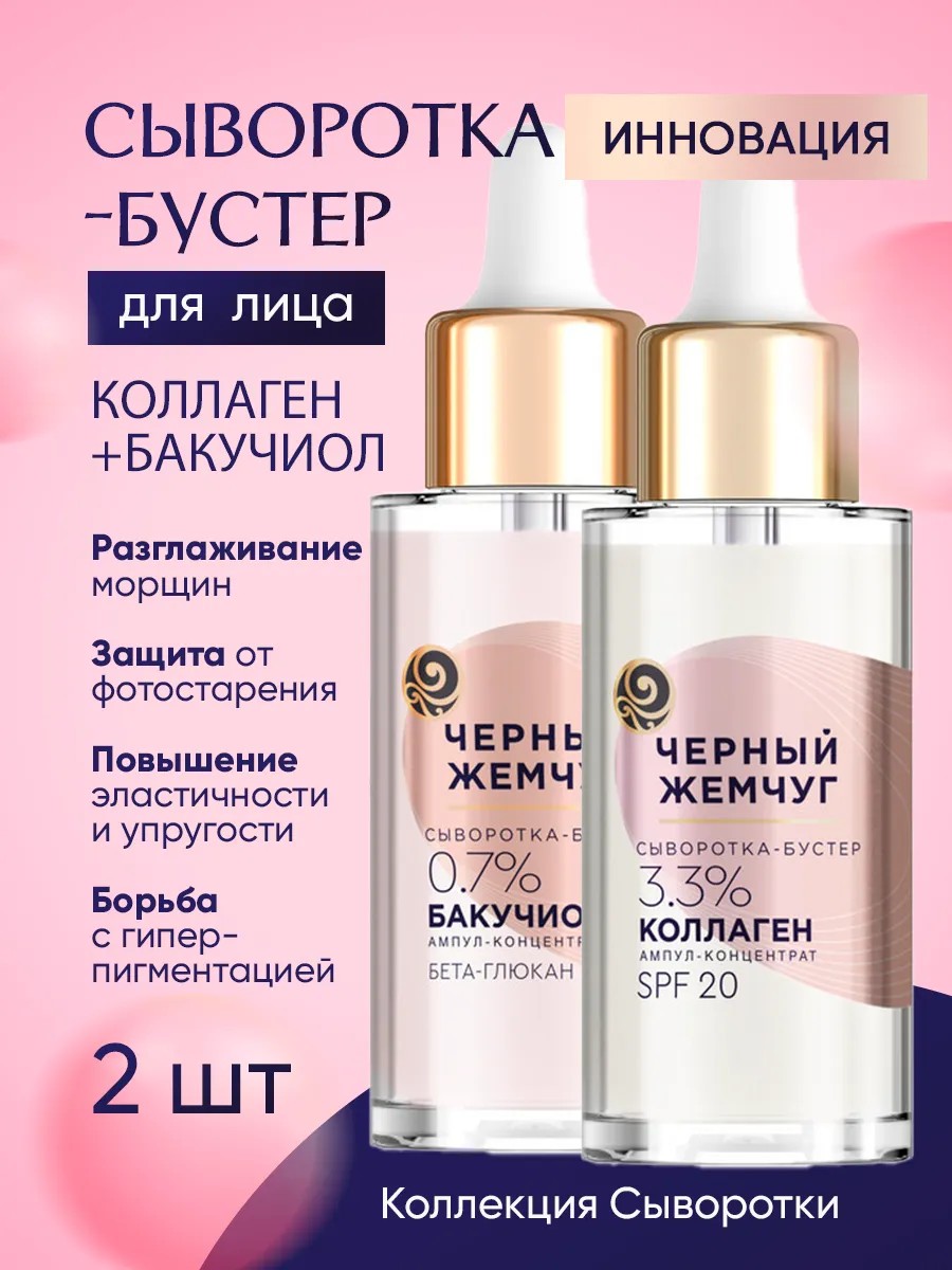 Черный Жемчуг Сыворотки - бустер для лица от морщин с коллагеном 2шт