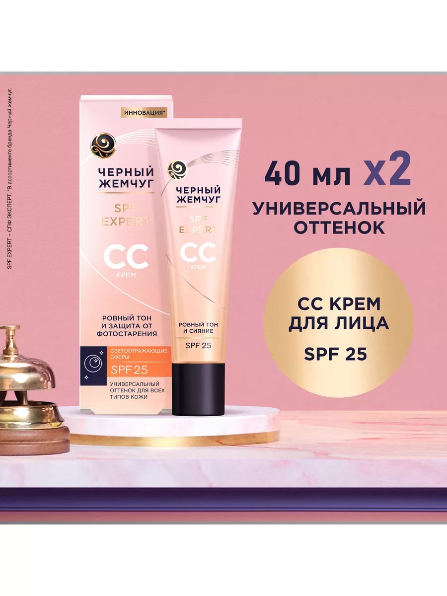 Black Pearl Face Cream. This innovative CC cream with SPF 25 and light-reflecting spheres is designed to meet the needs of skin of any age. Its adaptive, melt-in texture with mineral pigments provides 12 hours of coverage without a greasy shine or mask effect. SPF creates a protective shield against UV rays, preventing premature aging and hyperpigmentation. Vitamin C helps cells resist free radical damage, imparts radiance, and reduces wrinkles. The OxiFree antioxidant complex (vitamin E and dipeptide carnosine) deeply moisturizes and stimulates natural barrier functions. Contents: 2 packages per set.