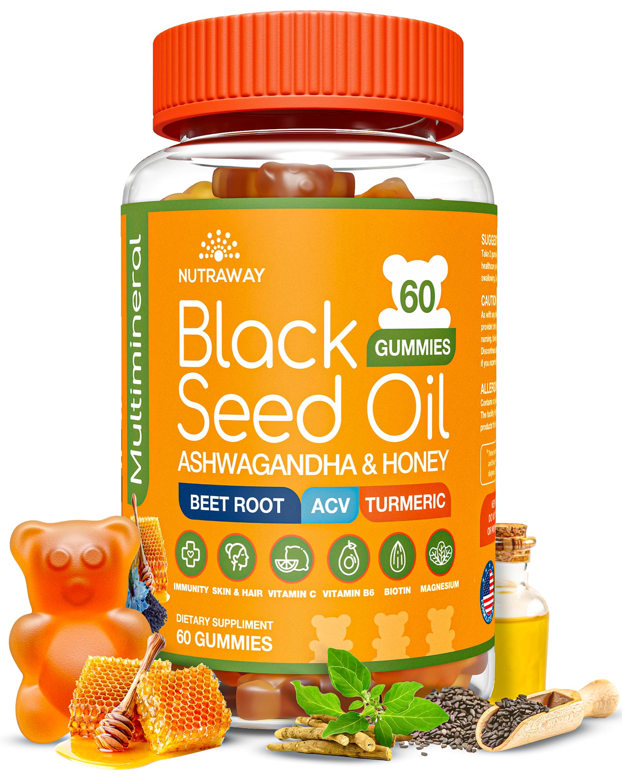 Ingredientes Naturales y Producción de Calidad: Elaboradas sin soya, lácteos, gluten ni colorantes artificiales, estas gomitas siguen un enfoque limpio y seguro. Se producen en una instalación certificada GMP y probada por terceros para garantizar pureza y calidad. Apoyo Diario para Adultos y Niños: Cada porción ofrece vitaminas esenciales y extractos botánicos en un formato práctico y fácil de tomar. Son una manera sencilla de mantener una rutina constante sin cápsulas. Fórmula Botánica Todo-en-Uno: Estas gomitas combinan aceite de semilla negra, vinagre de manzana, ashwagandha, biotina y otros extractos vegetales para un apoyo diario equilibrado. Su mezcla natural se adapta fácilmente a estilos de vida limpios y equilibrados. Quality Manufacturing and Trusted Testing: Each batch is produced in a GMP-certified, FDA-registered facility and verified by third-party testing to ensure consistency and purity. This dependable blend provides a clean and accessible option for both adults and kids. Traditional Support for Hair and Skin: Black cumin seed oil, ashwagandha, and biotin have long been appreciated for their supportive role in hair and skin care routines. This plant-based gummy format offers a gentle way to incorporate these traditional botanicals into everyday self-care. Clean-Label, Naturally Sourced Formula: Made without soy, dairy, eggs, nuts, gelatin, GMOs, or artificial colors and sweeteners, these gummies support a purer approach to daily nutrition. Their naturally sourced components help promote digestive comfort and overall balance. Daily Multivitamin Support for Adults and Kids: Each serving provides vitamin C, vitamin B6, and beneficial botanicals in an easy-to-take gummy. Designed for simple daily use, they help maintain consistent wellness without relying on capsules or pills. All-in-One Botanical Wellness Blend: These Black Seed Oil Gummies combine black cumin seed oil, ACV, ashwagandha, biotin, turmeric, beet root, and pomegranate for a well-rounded daily boost. Their balanced, plant-focused formula integrates seamlessly with keto, alkaline, and clean-label lifestyles.
