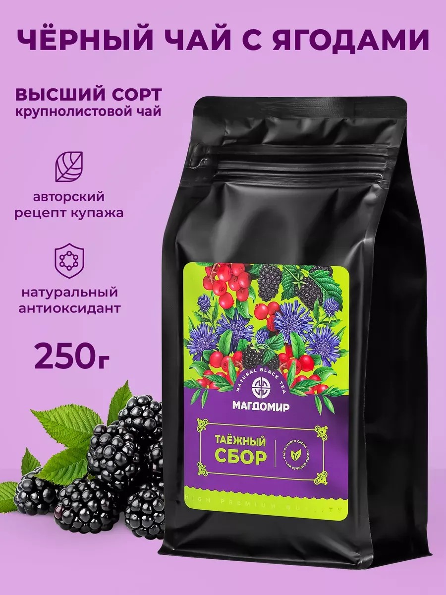 The richness of vitamins and minerals in loose-leaf tea with natural wild berries and herbs will strengthen your immune system, give you a boost of energy, and lift your spirits! Taiga Tea is a unique blend of large-leaf black Ceylon tea with the addition of aromatic leaves and berries of lingonberry, blackberry, red currant, cornflower, and calendula. Packaged in a stylish bag, this Siberian health tea will delight you with its aroma. To access the zipper, tear off the protective strip on the front of the bag without opening it with scissors. This natural premium tea with berry and fruit flavors is a true gift for lovers of fine tea. It can be brewed at home or in a sauna, taken with you on a walk or ice fishing. This elite black herbal tea with pieces of fruit and berries is an assortment of beneficial ingredients. It's sure to please all connoisseurs of quality tea and makes an unforgettable, delicious gift. Products, food, and gourmet food are also available. This is a wonderful gift for any occasion: February 14th, February 23rd, March 8th. Tea is a gift for a man, a gift for a woman, and for any occasion for your family and friends. It's a great gift idea for a girlfriend or loved one, as well as for grandparents, sisters, or dads. Even for a colleague or boss on a significant occasion. Or a gift for yourself or your boyfriend for no reason at all. In hot summer weather, it's pleasant to drink as iced tea. Try and enjoy our signature tea "Taiga Collection"!