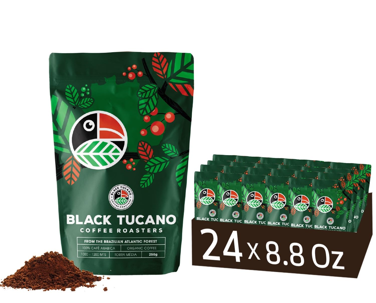 Black Tucano Brazilian Specialty Medium Roast Organic Coffee - Premium 86+ Points - Ground Coffee - 250g 24 Pack