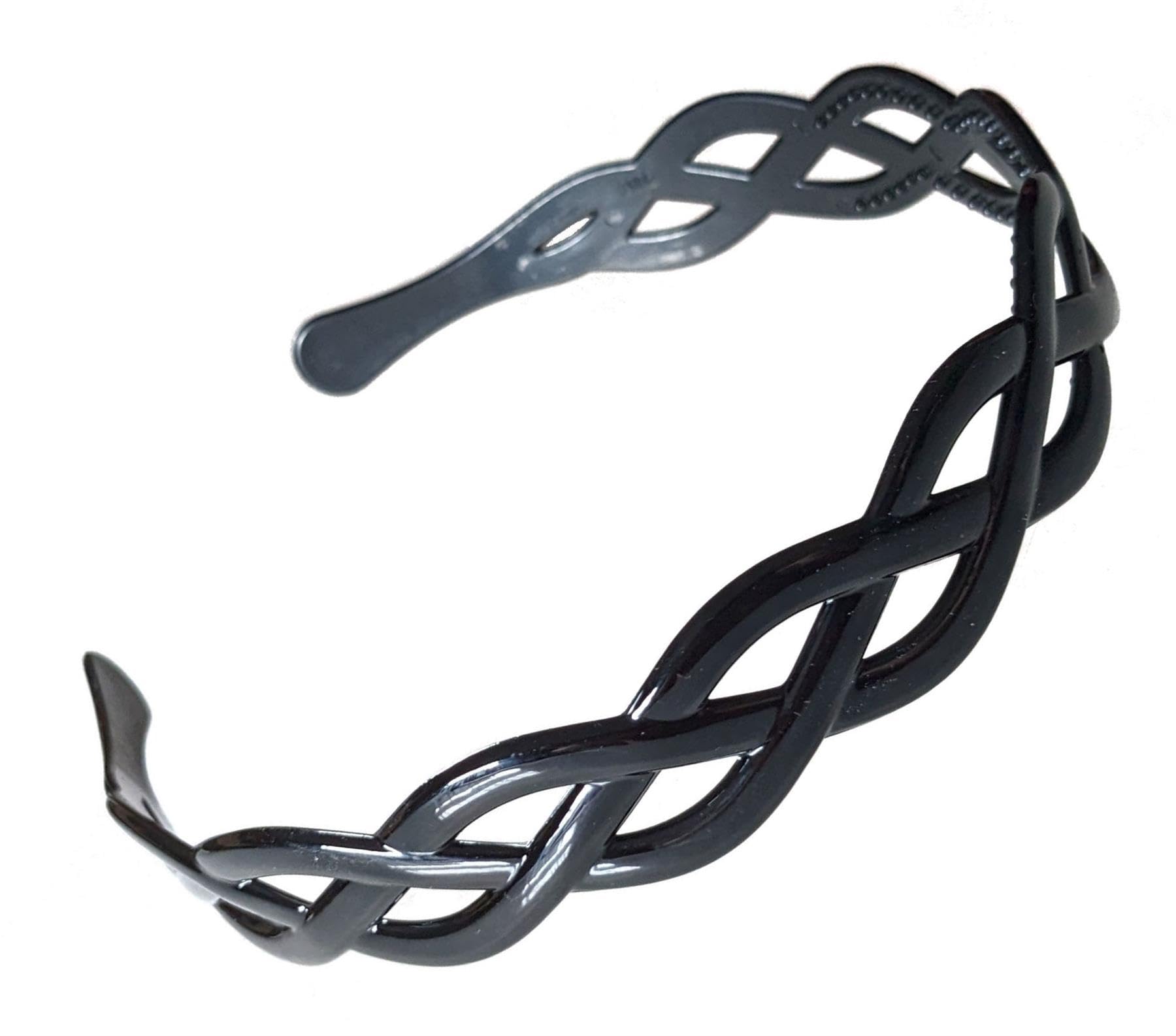 Black Weave Plastic Grip Teeth Alice Band Hair Band Headband for Women Girls by Glitz4Girlz