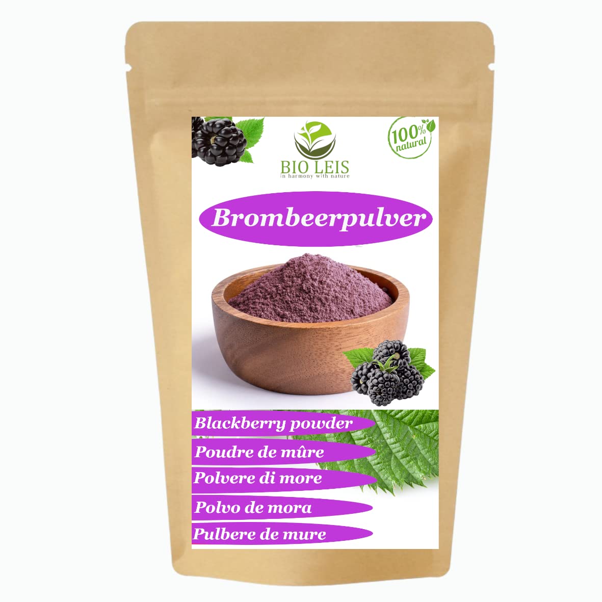 Blackberry powder contains 100 natural dried and pulverized blackberry powder. The blackberries are free of artificial flavors, colors, preservatives, or other chemical additives. Blackberries have an intense, sweet-tart, and aromatic flavor and are highly nutritious. Store in a cool, dry place. Country of origin: Romania INGREDIENTS blackberries