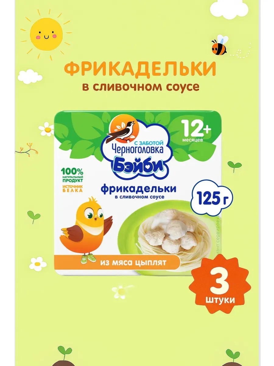 Черноголовка Бэйби Фрикадельки Цыпленок сливочный соус 3х125
