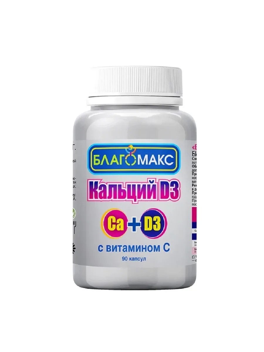 Благомакс Кальций Д 3 с витамином С - это биологически активная добавка к пище, рекомендуется в качестве дополнительного источника кальция, витаминов D3 и С. Кальций является основным компонентом костей и зубов. Кроме этого он регулирует работу нервной системы, участвует в свертывании крови, способствует правильному формированию мышечной системы. Витамин D3 увеличивает всасывание кальция в тонком кишечнике. Поскольку витамин D регулирует процесс усвоения кальция и фосфора, он играет ключевую роль в нормальном формировании костей и зубов. Витамин С или аскорбиновая кислота - является одним из основных питательных веществ в человеческом рационе, которое необходимо для нормального функционирования соединительной и костной ткани.