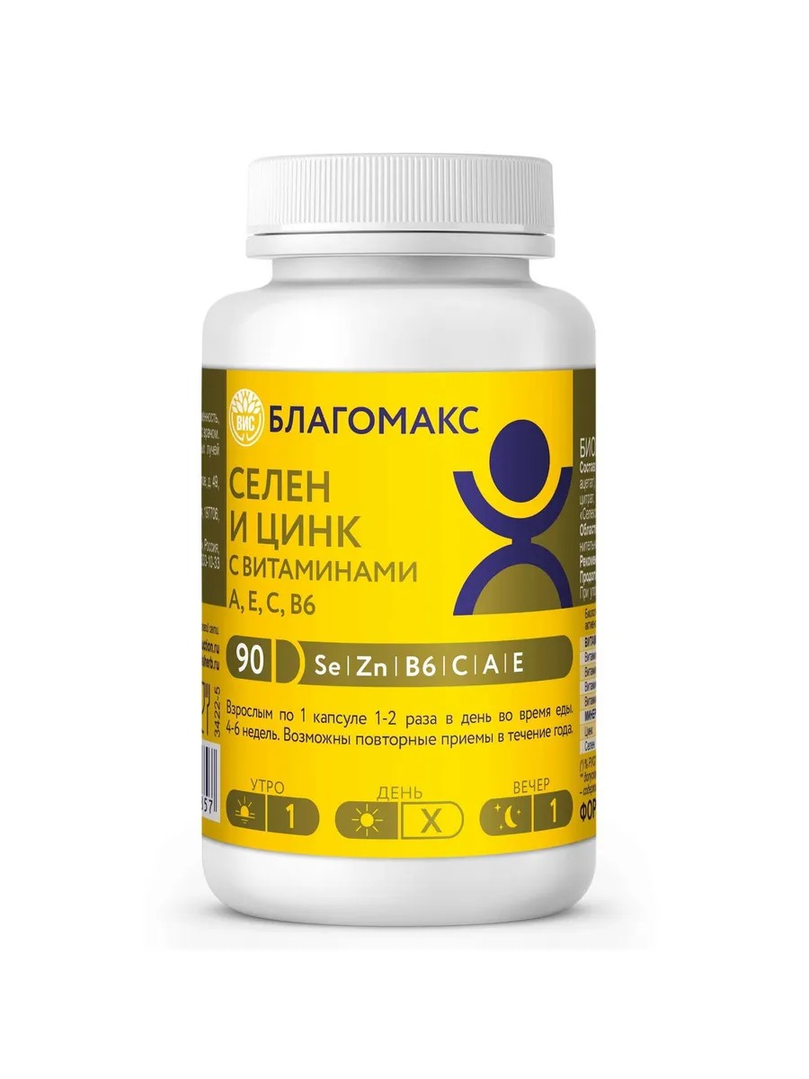Благомакс Селен цинк с витаминами А,Е,С,В6 400мг 90шт -1 уп.