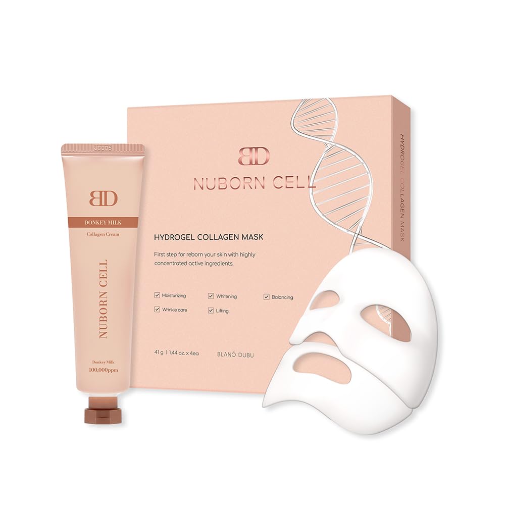 BLANC DUBU Nuborn Cell Collagen Moisture Duo Nuborn Cell Donkey Milk Collagen Cream Hydrogel Collagen Mask for Deeply Hydrating Brightening and Improving Fine Lines 2.2 fl. oz. + 4 Sheet Masks