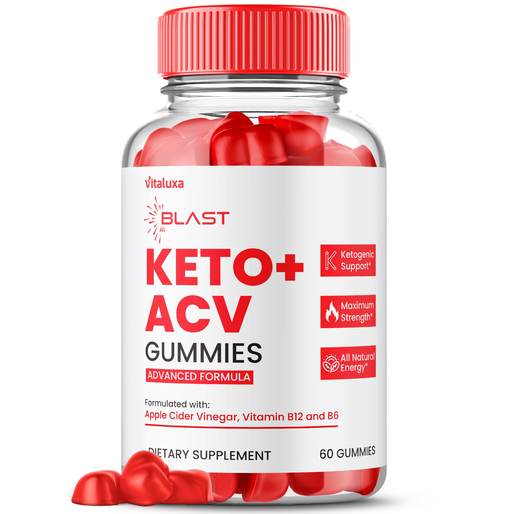 Vitaluxa provides thorough 3rd party tested vitamin supplements formulated in a GMP certified facility that adheres to stringent quality control procedures. You can count every product to contain consistency, potency, and safety. Our KetoACV Blast Gummies were made for those seeking a high quality, Non-GMO, Gluten Free, clean natural daily health and wellness supplement. BlastKeto ACV is formulated with all natural vitamins and herbs including all natural raw Apple Cider Vinegar, Folic Acid and Beet Root juice that help focus on your problem areas of the body. KetoBlast Gummies with Maximum Strength Potency of 1000MG to enhance overall energy and stamina to help you stay active and alert throughout the entire day. Blast Keto ACV Advanced Formula Supplement designed to complement a balanced approach to your daily dietary goals.