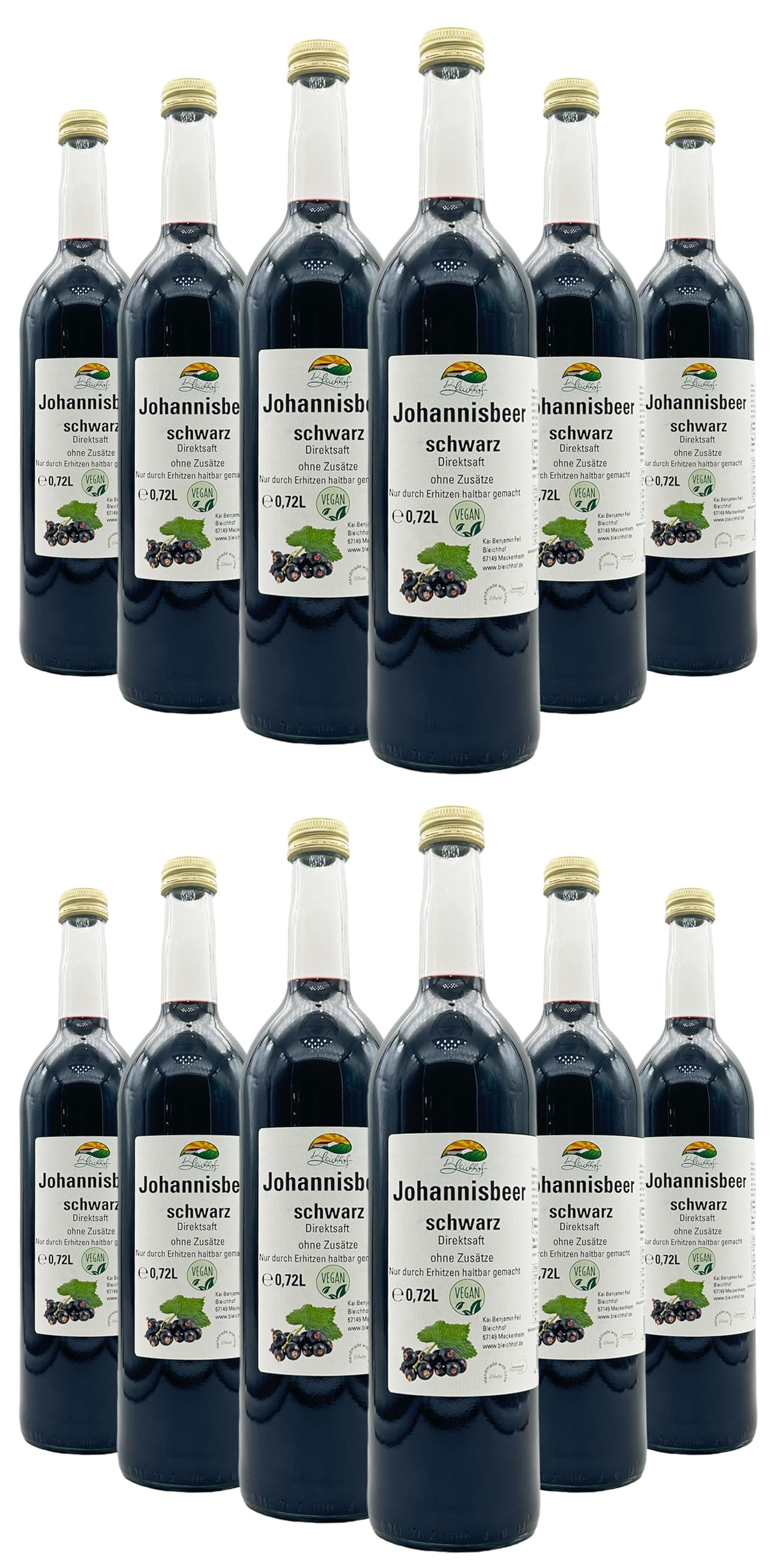 Bleichhof Bleichhof Blackcurrant Juice - 100% Direct Juice Vegan No Added Sugar Pack of 12 (12x0.72L)