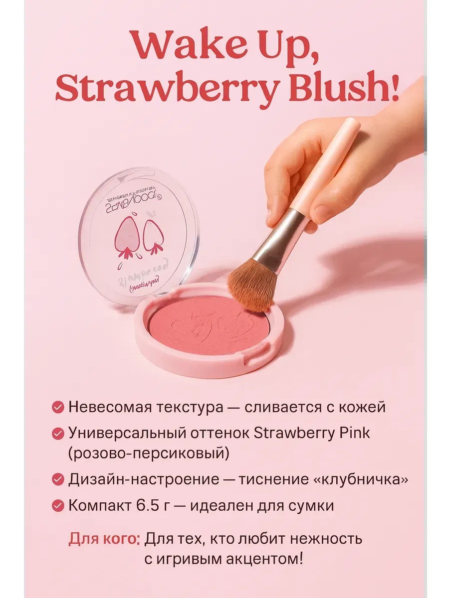 | Полное наименование товара | Румяна компактные Seven Cool Strawberry Blush, 6.5 г, оттенок розово-персиковый |