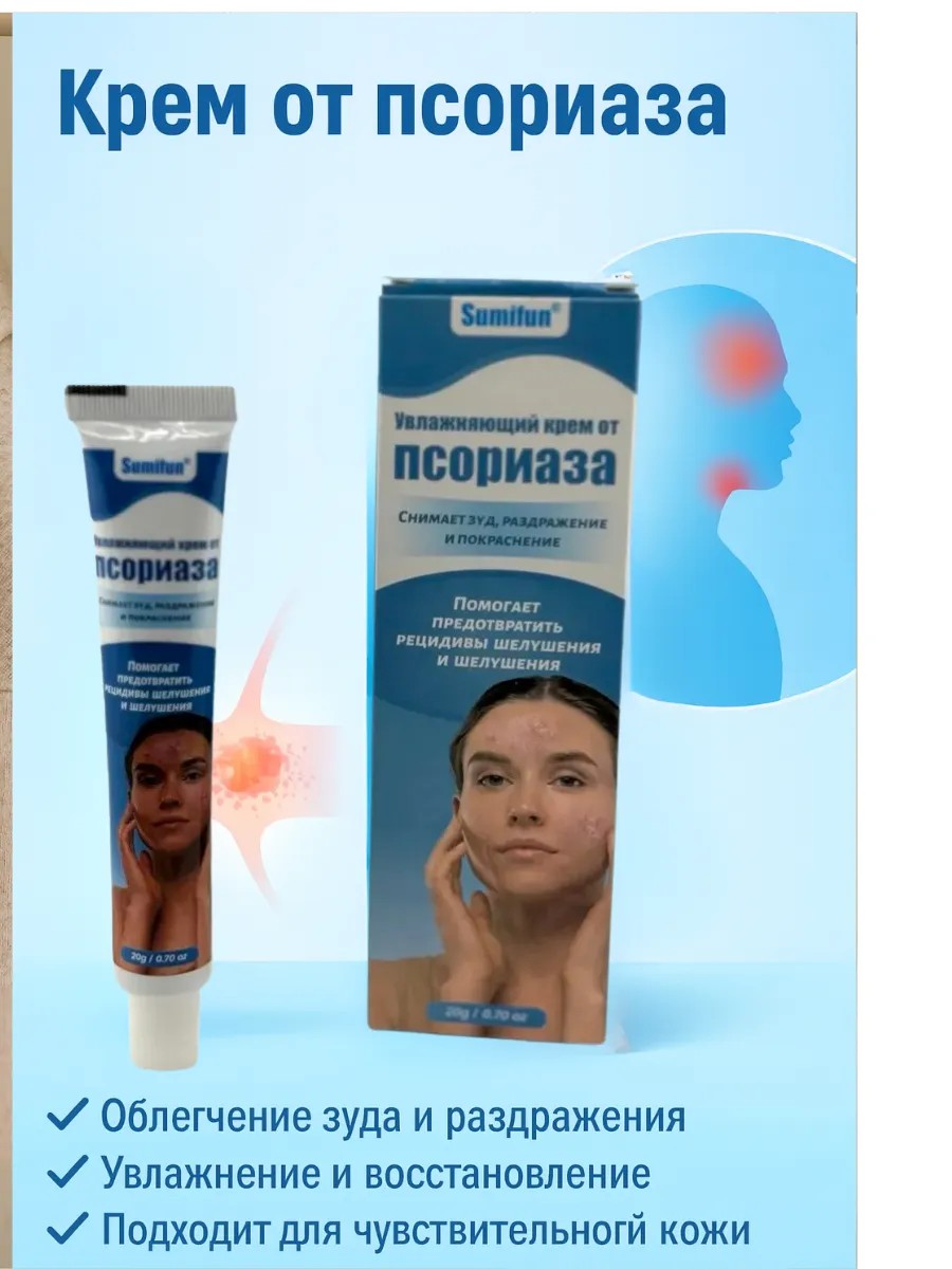 | Полное наименование товара | Увлажняющий крем от псориаза "Sumifun" для снятия зуда, раздражения и покраснения, помогает предотвратить рецидивы шелушения и сухости кожи |