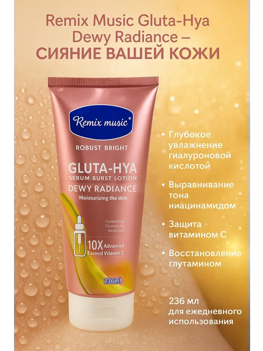 | Комплектация | Лосьон для тела Remix Music Gluta-HYA SPF 236 мл — 1 шт. |