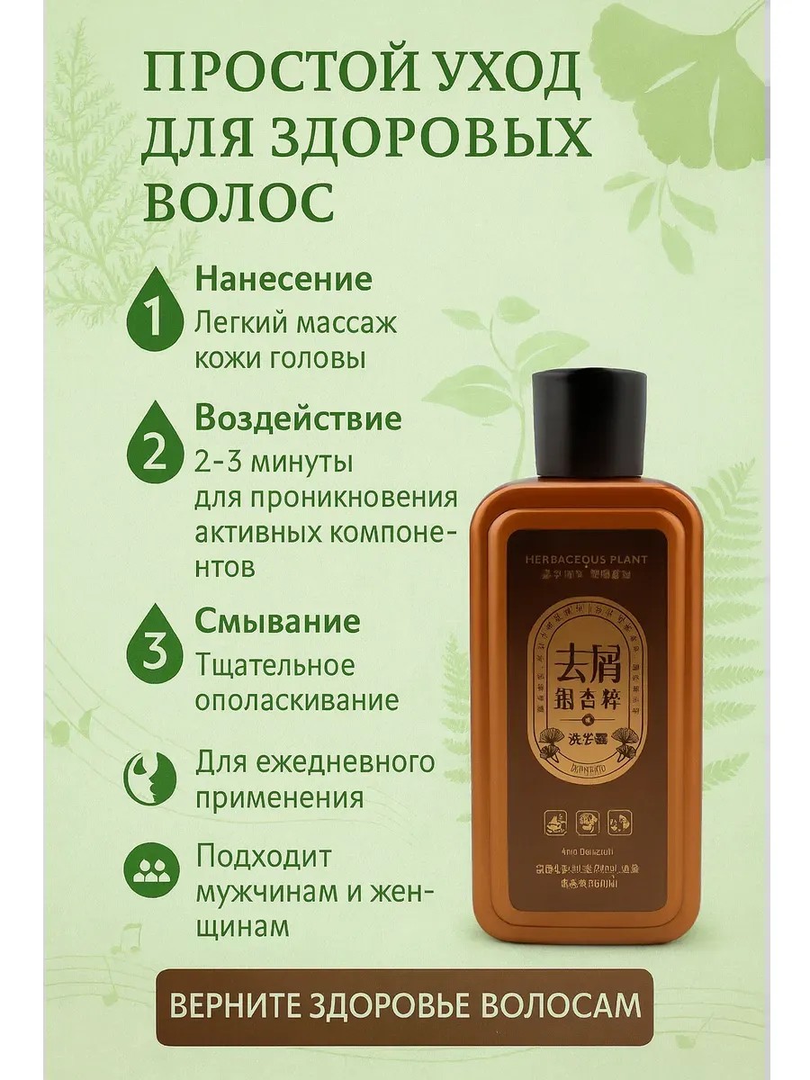 Эффективный шампунь для волос на основе натуральных экстрактов гинкго билоба и имбиря создан для комплексного ухода за кожей головы. Активная формула мягко очищает, устраняет зуд и шелушение, регулирует работу сальных желез и препятствует образованию перхоти.