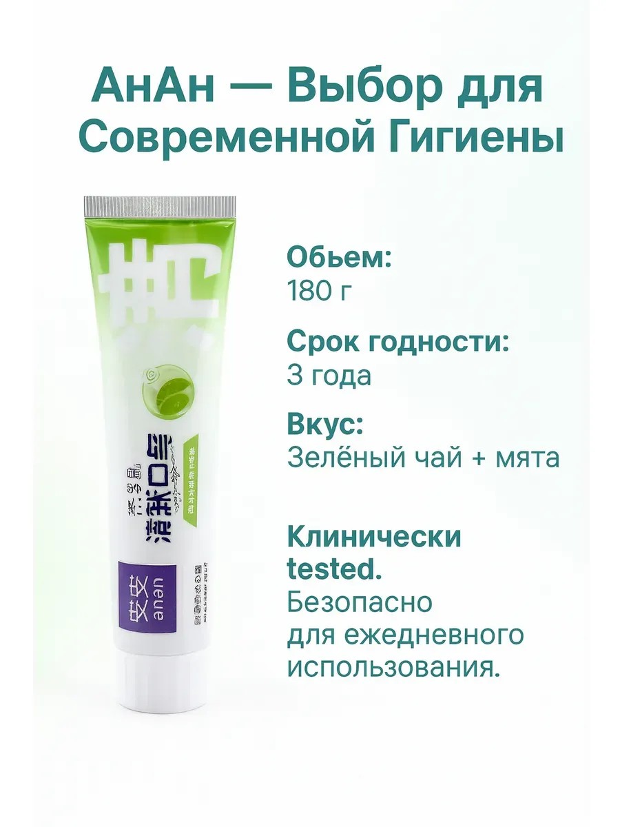 | Полное наименование товара | Зубная паста AnAn 180 г — с зеленым чаем, освежающая, против запаха изо рта |