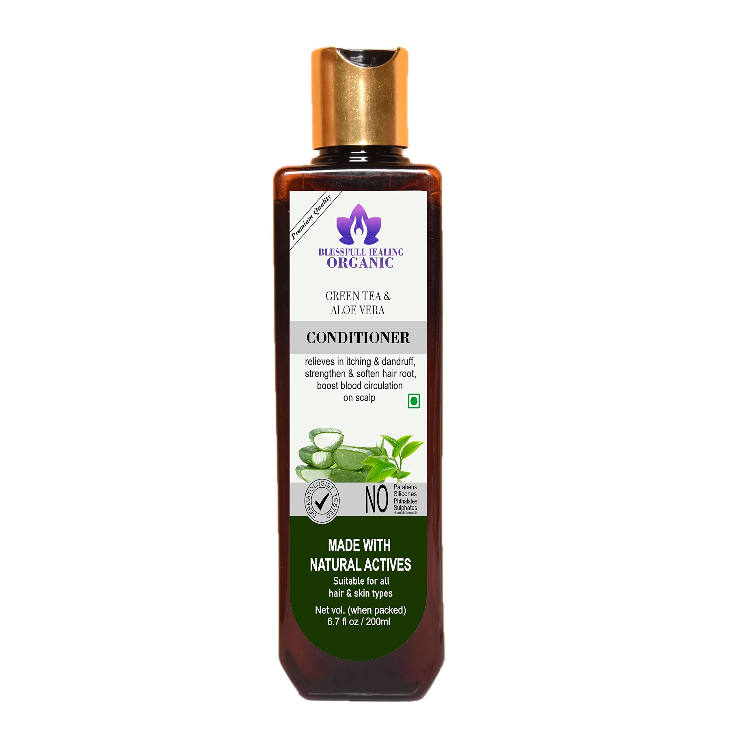 Blessfull Healing Organic Green Tea & Aloe Vera Natural Hair Conditioner 200 ml (Packing May Vary)