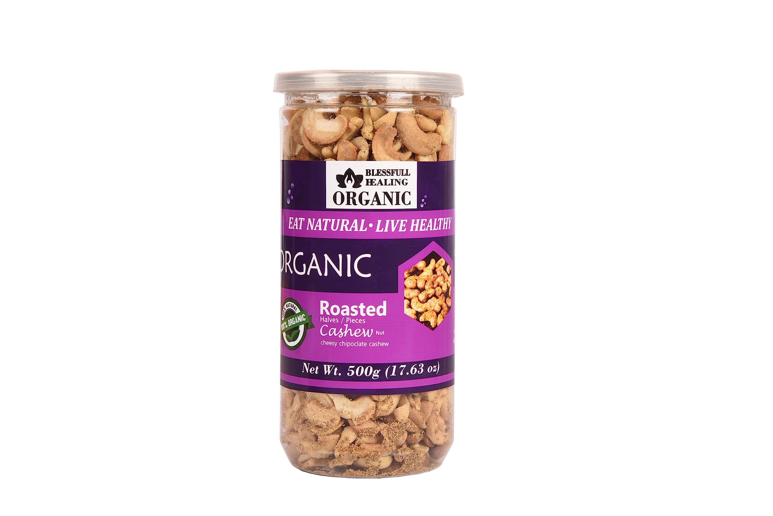 Blessfull Healing Organic Natural Vegan Cheesy Jalapeno Roasted Halves/Pieces Cashew Nuts Crunchy Kaju 500 Gram