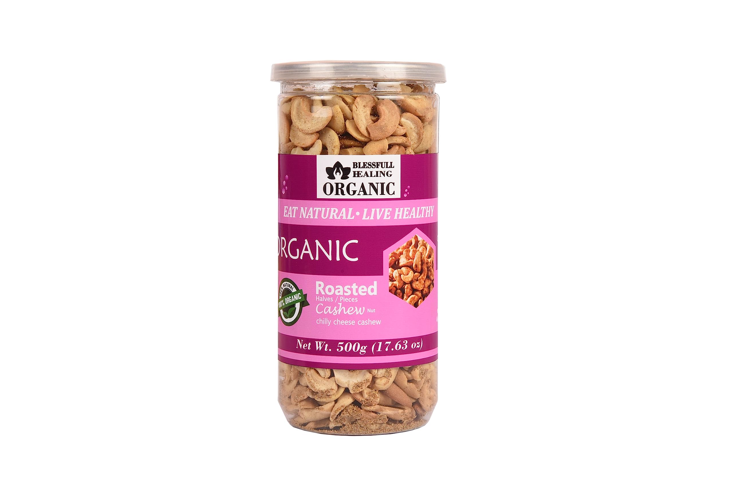 Blessfull Healing Organic Natural Vegan Chilly Cheese Roasted Halves/Pieces Cashew Nuts Crunchy Kaju 500 Gram
