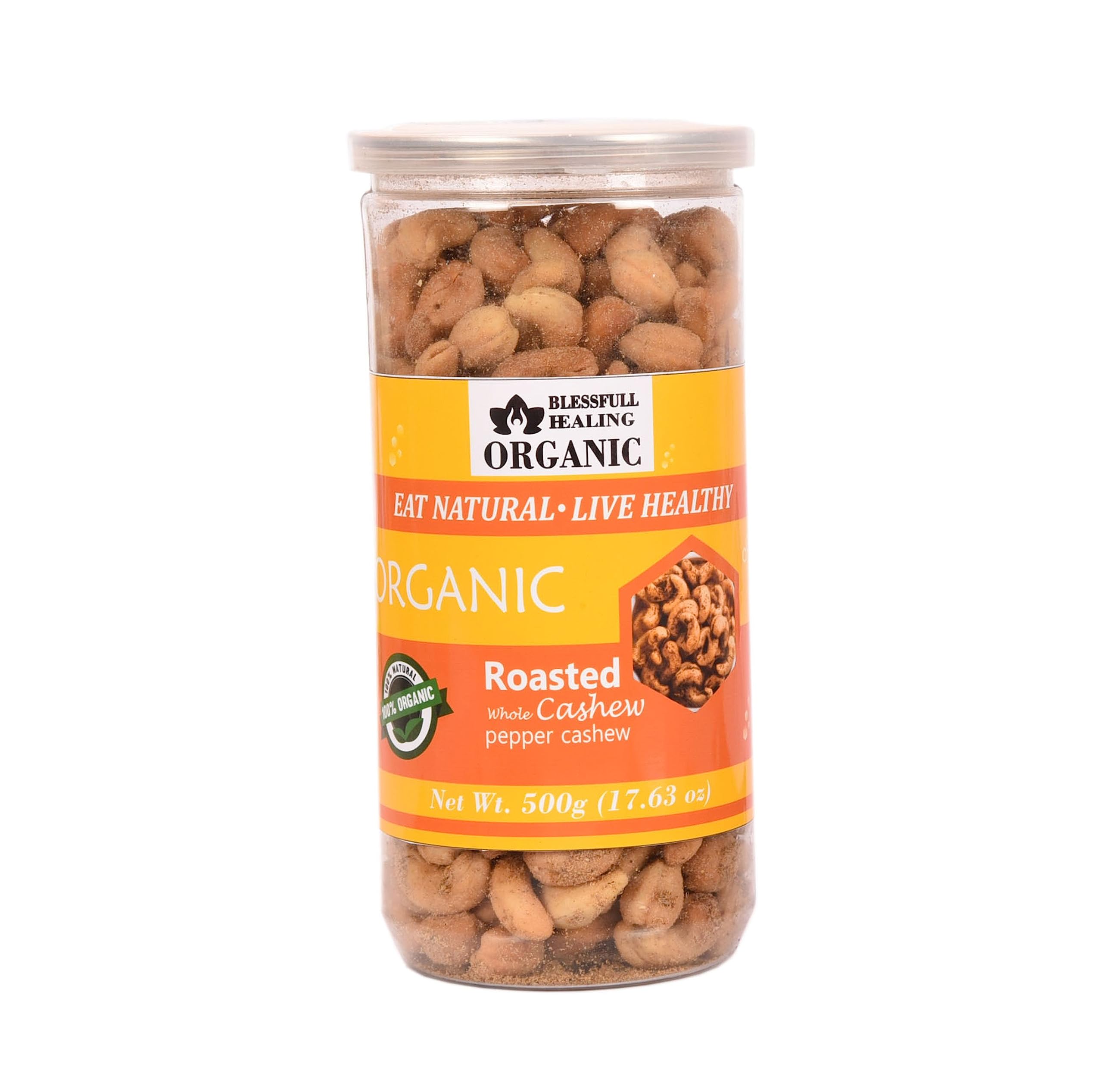 Blessfull Healing Organic Natural Vegan Pepper Roasted Whole Cashew Nuts Crunchy Kaju 500 Gram