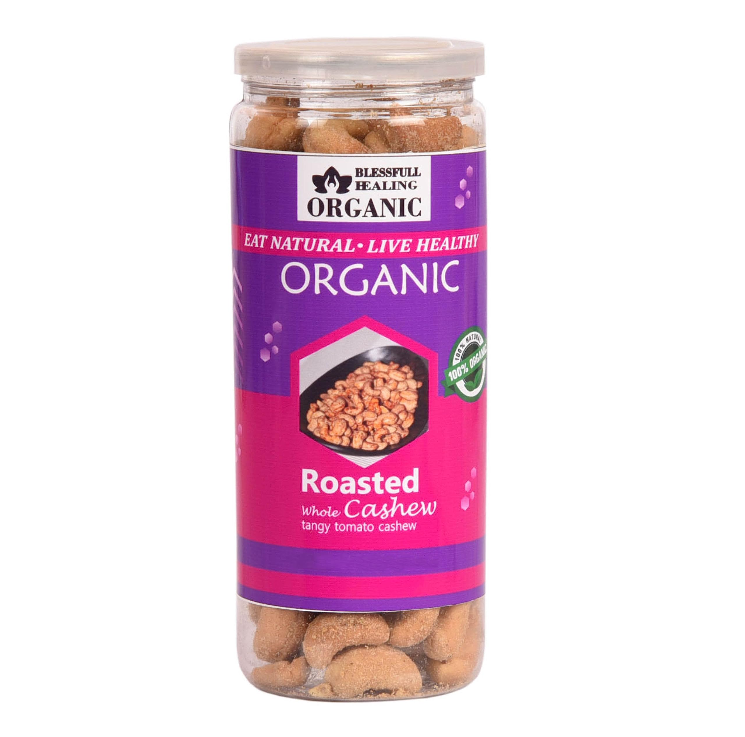 Blessfull Healing Organic Natural Vegan Tangy Tomato Roasted Whole Cashew Nuts Crunchy Kaju 150 Gram