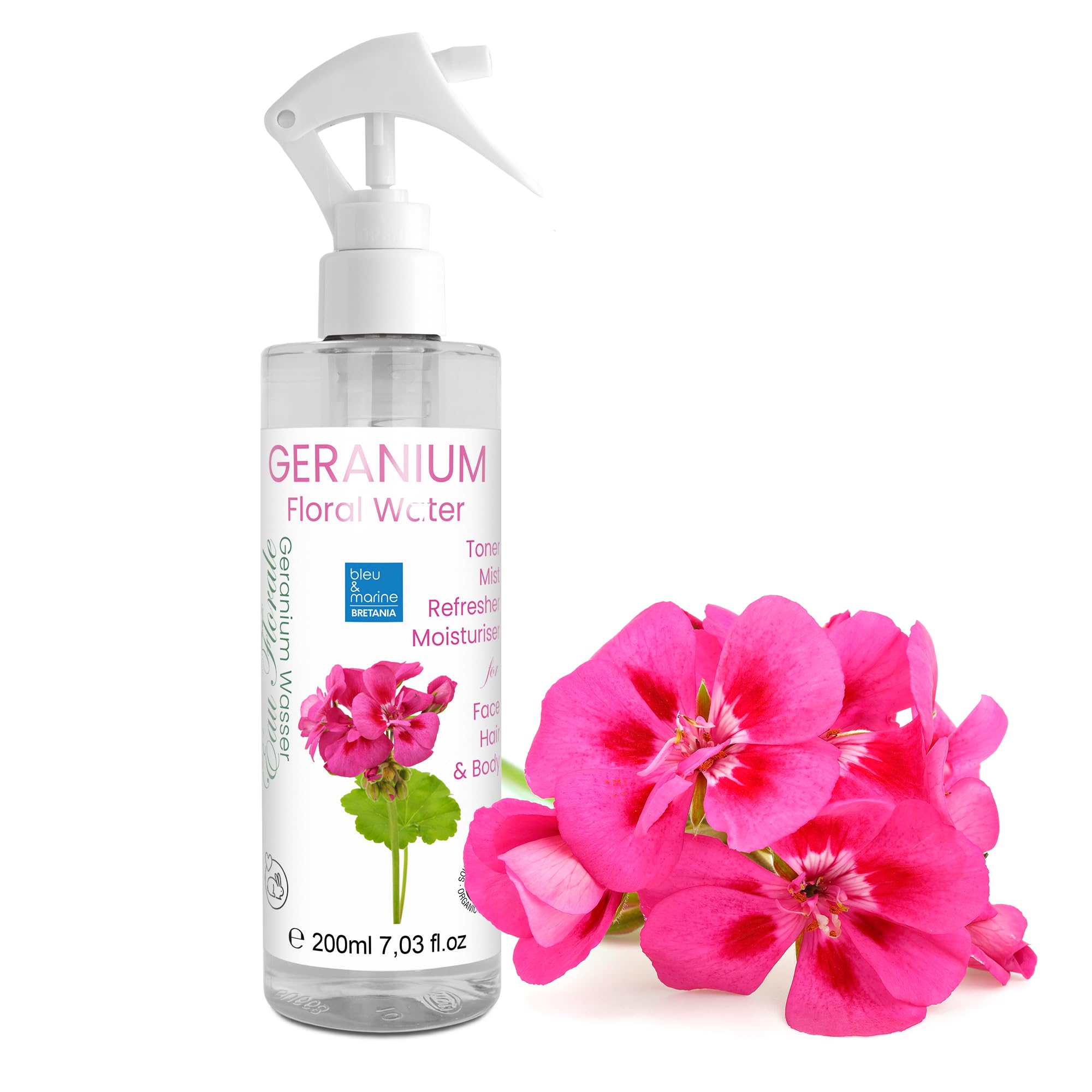 Bleu Marine Bretania - Hydrolat Géranium Nettoyage, Réduction Inflammation, Apaise Rougeurs, Adoucit, Hydrate Peaux Grasses Sensibles, 200ml Spray