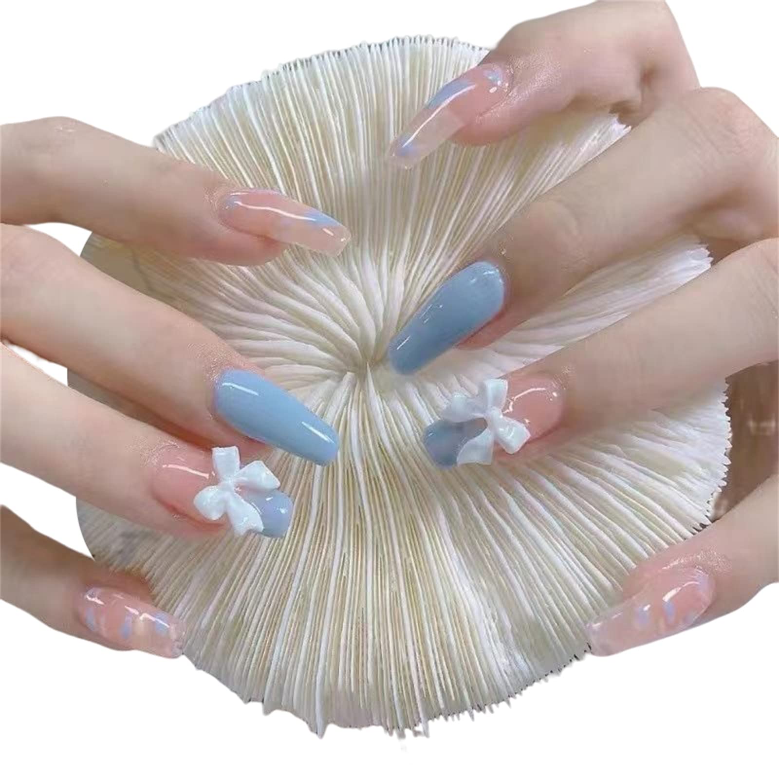 Jelly Glue Sticking Method: 1. First, lightly polish the nails for a better fit. 2. Choose the right jelly glue and stick it on the corresponding nail. 3. Put on the appropriate nail tip and press it harder for 20 seconds, it will fit tighter. Glue Sticking Method: 1. Place the full nail tip on the arc of the nail root for comparison and determine how to correct the full nail tip. 2. Polish the full nail tip with nail file until it fits perfectly with your nails. 3. Drop the glue on the middle part near the root, don't drip too much, usually 1 drop. 4. Before the glue is dry, start to paste the nail tip from the root, adjust the position while sticking it, remember not to hit the nail root at once. 5. Dip a cotton swab with some nail polish remover and gently wipe off the glue overflowing around the nails. Jelly Glue removal method: Gently move the gap along the nail tip side of the finger until the nail tip falls off. The jelly glue will be removed. Save the nail tip and use it again. Glue Removal Method: 1. Cover the nails with a suitable amount of cotton soaked nail remover, do not expose the nails, wrap them with plastic wrap, wait for about 15 minutes to remove them, the fake nails will be dissolved, just wipe it off. 2. It is recommended to use this method: remove the nails with a gel remover, find a container to pour out a part, put your fingers in it, soak the fake nails, and then use the remaining part to clean up your nails. (The gel remover does not harm or irritate one's nails and skin, but it will dilute the false nails) Package Include: 10 x Fake Nail 1 x Clean Cotton Sheet 1 x Rub Strip 1 x Wooden Stick 1 x Glue 1 x Nail Removal StickGreat Gift --- Pressed nails are exquisite gifts for wives, girlfriends, mothers or sisters. It can attract people's attention anywhere, and it is also very suitable for parties wedding masquerade Halloween Christmas, etc. Easy To Apply --- Wipe off the oil on the nail surface with your own alcohol cotton piece, polish the nail and select the appropriate nail tip size, select the appropriate size jelly glue to stick to the finger root, or drop the glue on the finger root, align the nail tip to the nail and press for 15 seconds, trim nail tip to fit. Time-saving Wide Range Of Uses --- Press On Nails gives you a perfect, non-damaging manicure in seconds for a bit of the salon cost and time. You can enjoy pampering yourself in the comfort of your own home. Use adhesive tabs for a few days show off. You can reuse your fake nails again and again.It is very suitable for professional nail experts and beginners, and also very suitable for professional nail experts or nail students. Optional Size --- Full nail design, practical length, there are different sizes available, you can choose the most suitable nail yourself, easily trim and file to the length and shape you want, making your nails fashionable and creative. Exquisite Appearance --- Create an exquisite and luxurious appearance for your nails, design your own nails for weddings, parties or weekend appointments, and have a very ture or at least professionally made appearance. The perfect choice for nail styling.