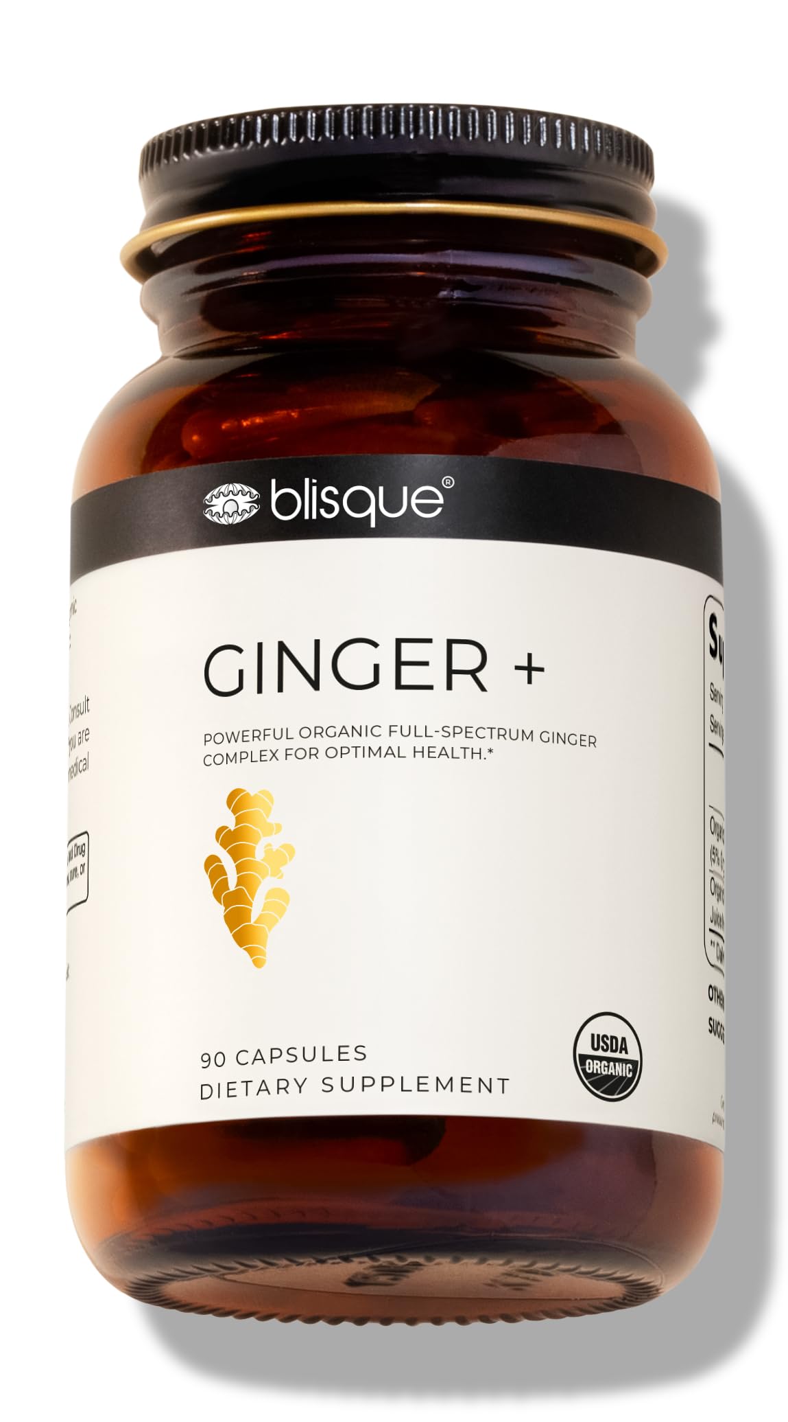 Blisque - Organic Ginger Supplement | for Digestive System Joint Support and Heart Health | 90 Capsules
