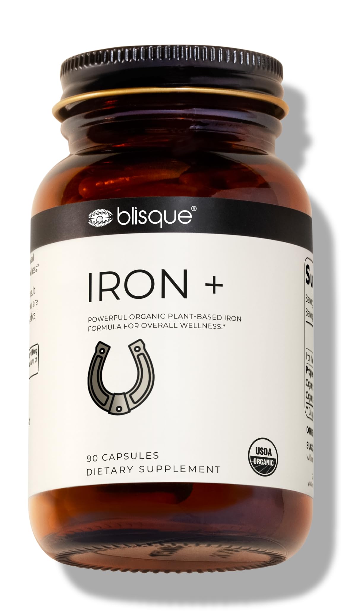 Blisque - Organic Plant-Based Iron Formula for Blood Health Immune Support and Energy | from Organic Curry Leaf Extract | 90 Capsules