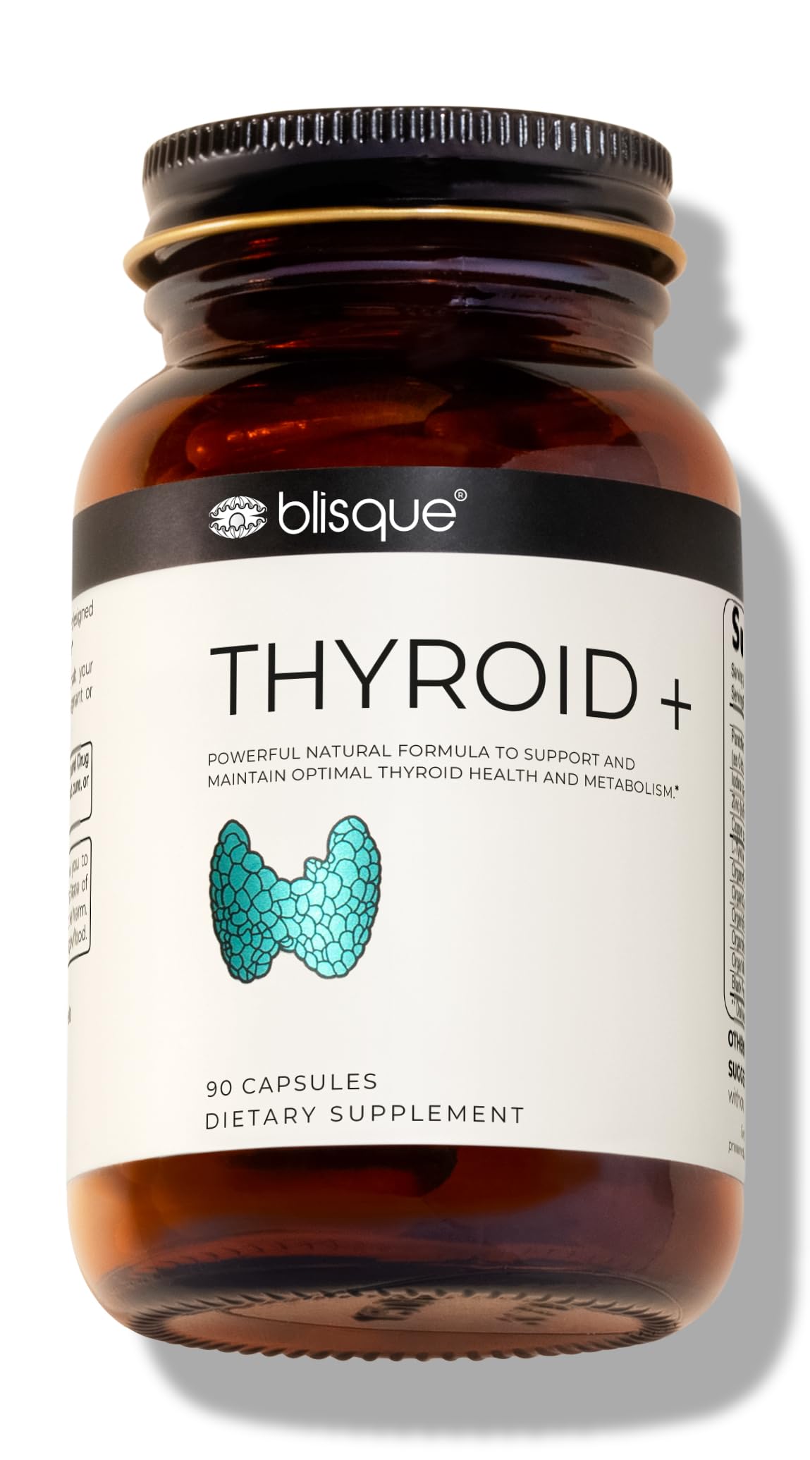 Blisque Thyroid Support Supplement Complex for Metabolism Boost and Increased Energy Clarity and Focus | Doctor-Approved | with Iodine Ashwagandha Zinc L-Tyrosine | 90 Capsules